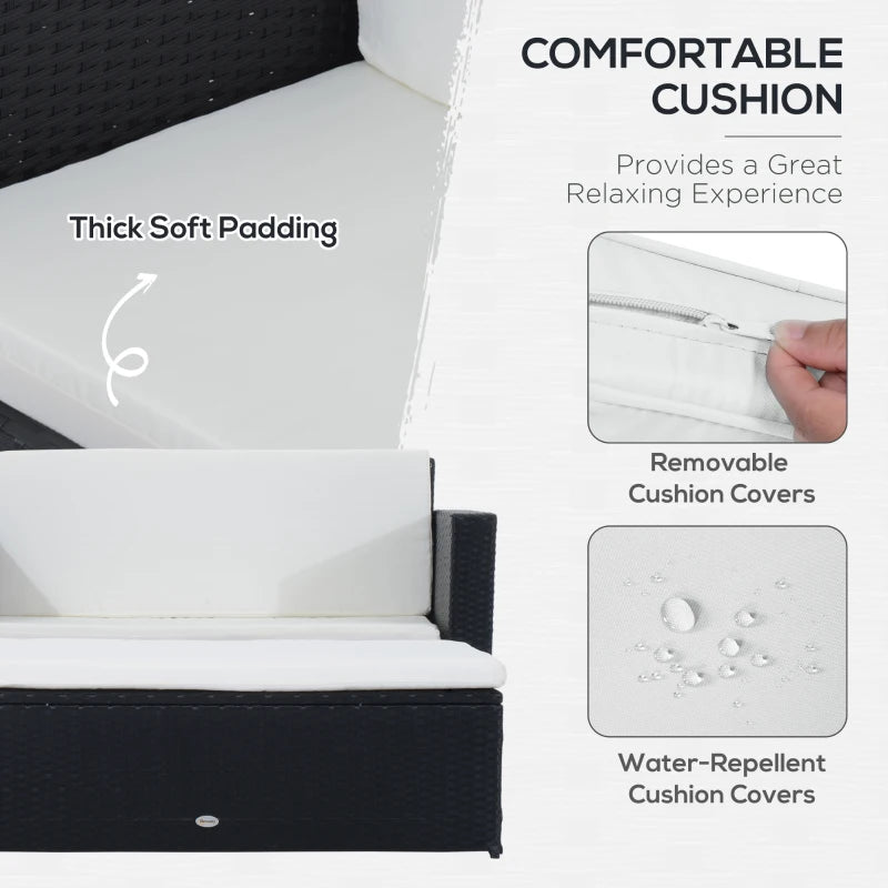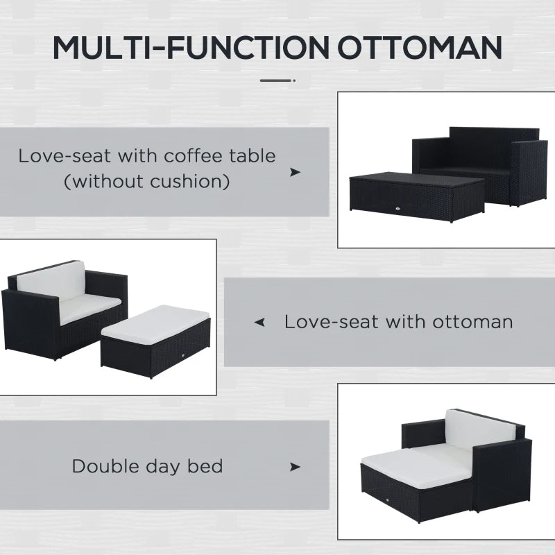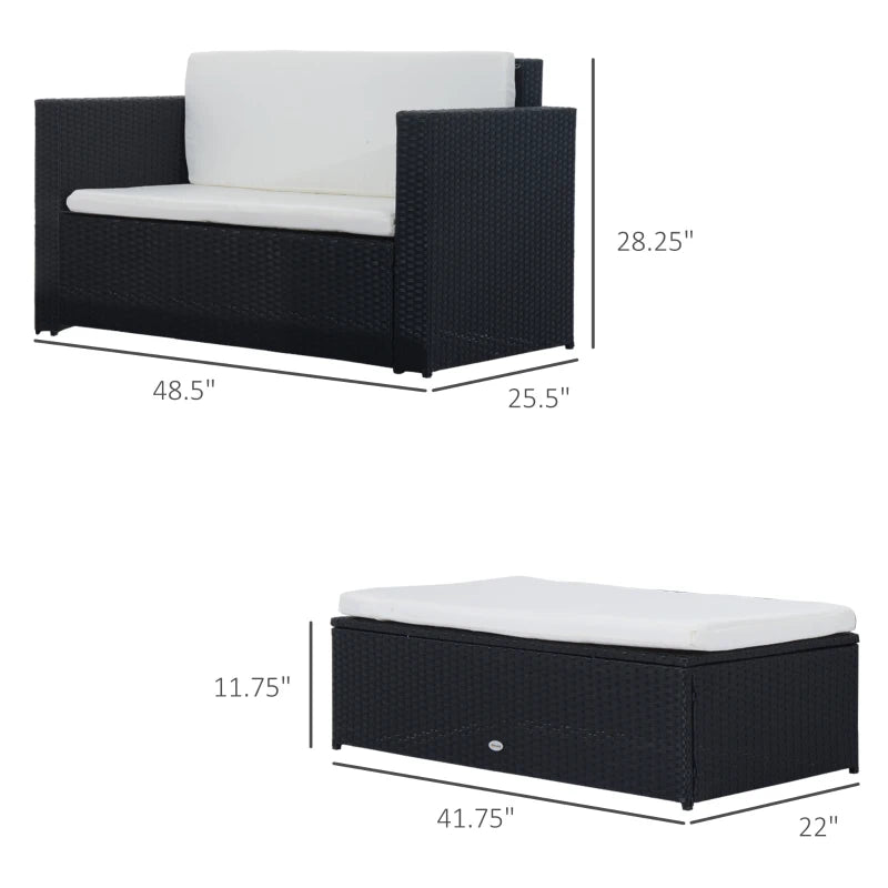 - Ensemble de canapés 2 pièces : ce meuble de balcon comprend une causeuse et un pouf avec coussin, un siège pour deux personnes sur le canapé, deux personnes peuvent s'asseoir sur les repose-pieds, parfait pour un patio, une terrasse, une véranda, une piscine, un porche, un jardin, un atrium, terrasse ou balcon.