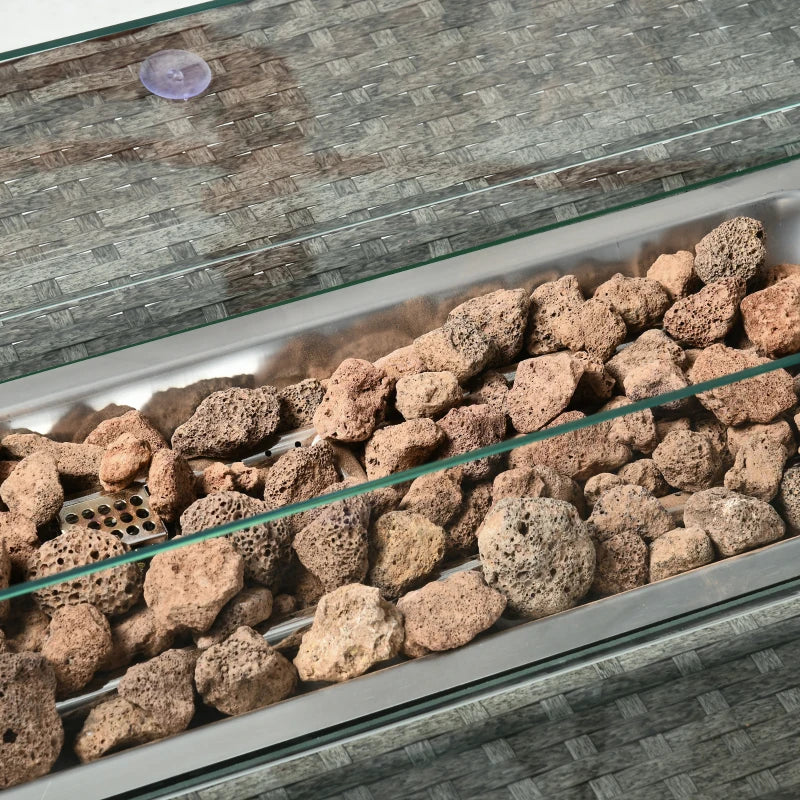 - Table de salle à manger avec foyer : Le foyer, équipé d'un pare-vent, ajoute une touche unique au mobilier et à l'atmosphère lors de l'utilisation de l'ensemble.