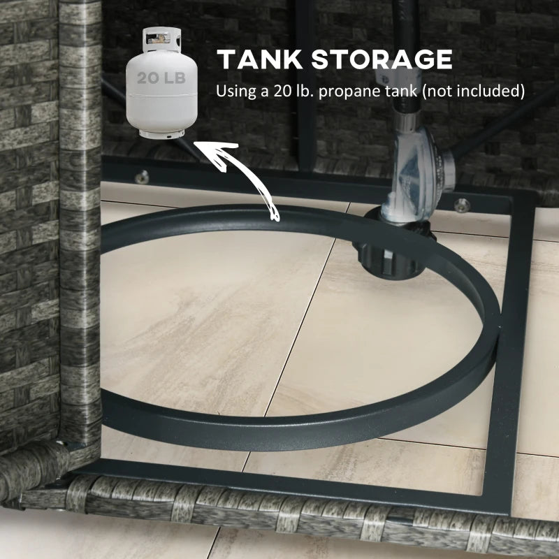 Ensemble de meubles de patio 6 pièces avec table de foyer à gaz de 50 000 BTU, table de salle à manger et chaises d'extérieur en rotin PE, ensemble de canapé de conversation sectionnel avec coussins, gris