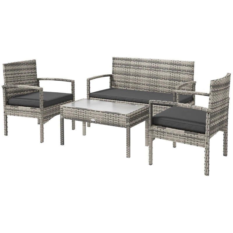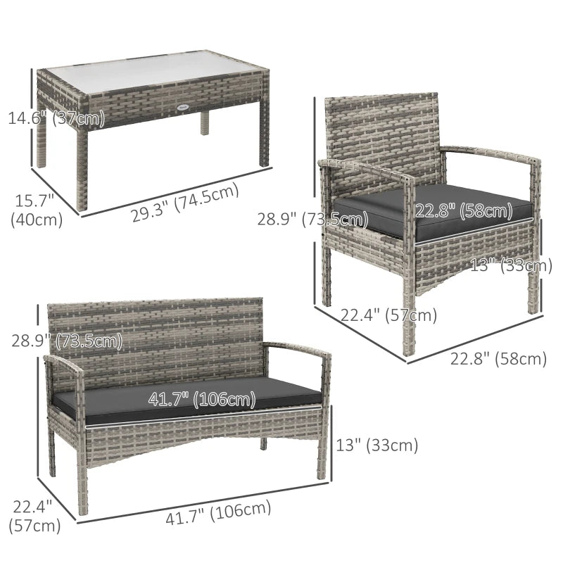 Ensemble de meubles de patio de 4 pièces avec canapé de causeuse, fauteuils, table en verre, canapé de conversation en osier extérieur,