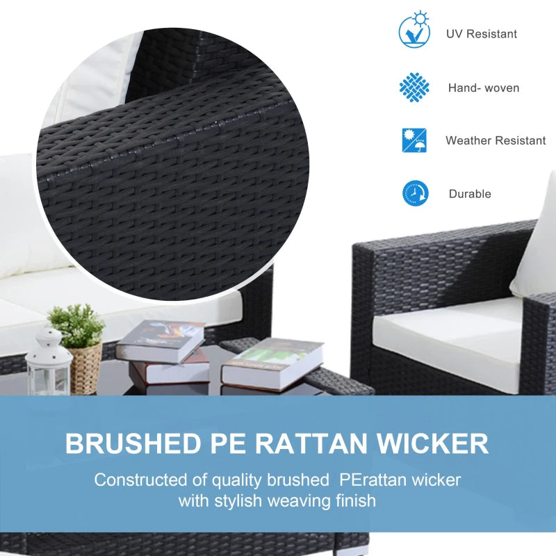- Table avec plateau en verre : cet ensemble de meubles de patio comprend une table centrale en verre trempé, offrant une résistance et une sécurité supérieures. La table offre une grande flexibilité, permettant diverses options de configuration en fonction de vos préférences.