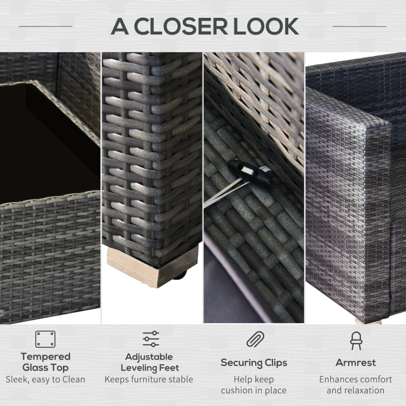 Ensemble sectionnel de jardin en osier 7 pièces avec table à thé, canapé de salon en rotin avec coussin, gris foncé