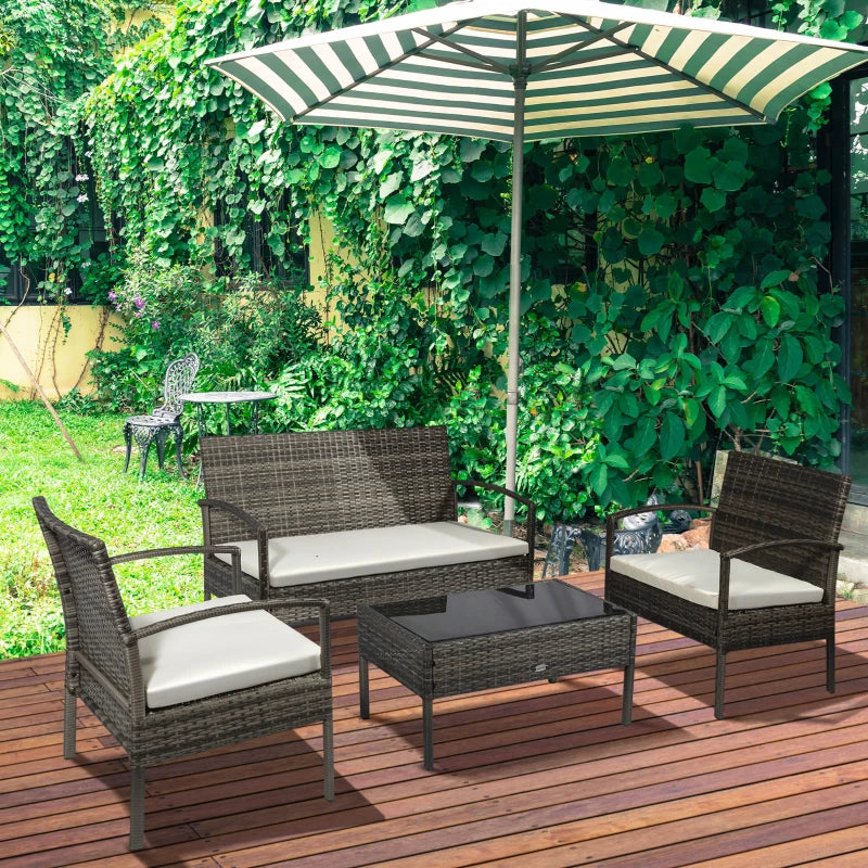 - Ensemble complet de 4 pièces : Cet ensemble de mobilier d'extérieur de 4 pièces est livré avec 2 fauteuils, une causeuse et une table spacieuse avec plateau en verre, garantissant qu'il y a toujours suffisamment de place pour les amis et la famille.