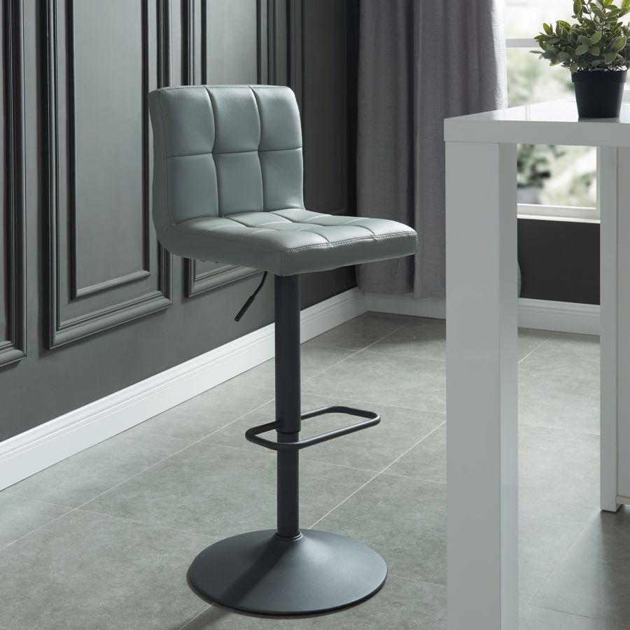 Design contemporain élégant pour ce tabouret. Le siège et le dossier gaufrés à la mode ajoutent du style. Sa poignée de levage à gaz vous permet de régler facilement la hauteur du comptoir à la barre. Siège pivotant à 360 degrés en similicuir noir avec repose-pieds et base chromés.