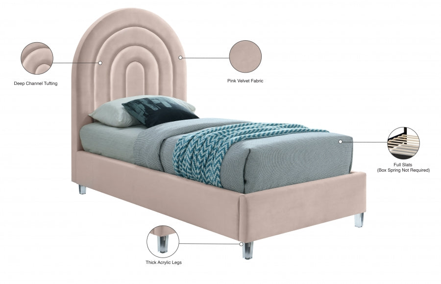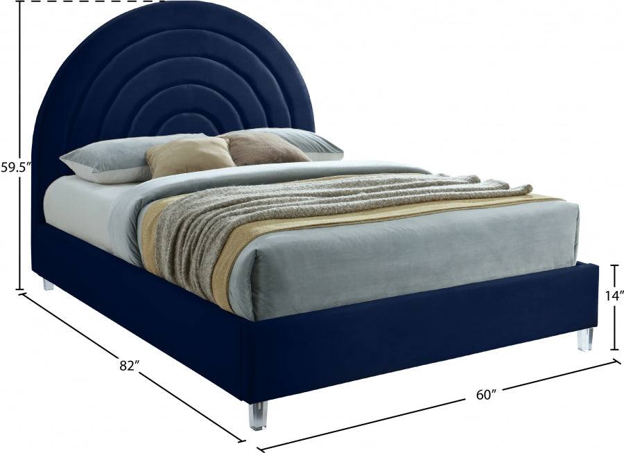 Il y a de quoi tomber amoureux de ce lit en velours arc-en-ciel. Ce superbe lit est digne d'un MVP avec son riche revêtement en velours recouvrant la tête de lit, les rails latéraux et le pied de lit. Ce lit repose sur des pattes épaisses en acrylique blanc pour un soutien accru et présente un capitonnage cannelé profond sur la tête de lit pour un look texturé à la fois spectaculaire et élégant.