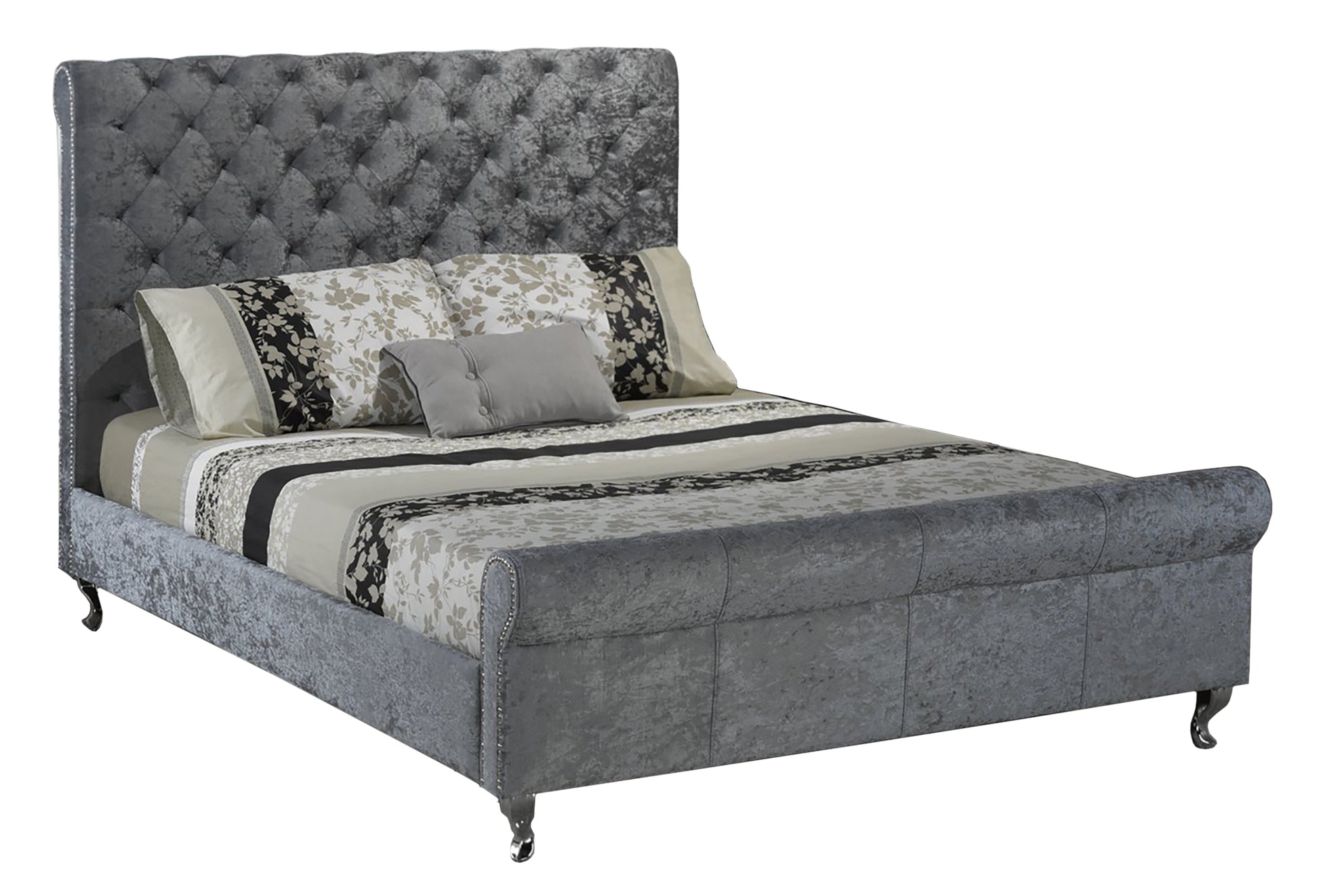 Vous chercherez n'importe quelle excuse pour aller au lit lorsque vous introduirez ce superbe lit dans votre espace de sommeil. Très moderne mais fidèle à l'attrait traditionnel, ce cadre de lit est enveloppé d'un tissu chenille tissé serré et repose sur des pieds en métal chromé solides et incurvés. Le cadre de lit attire l'attention avec son capitonnage en grille de diamants et ses détails cloutés. Une touche de luxe s'équilibre magnifiquement avec ce lit incroyablement attrayant.