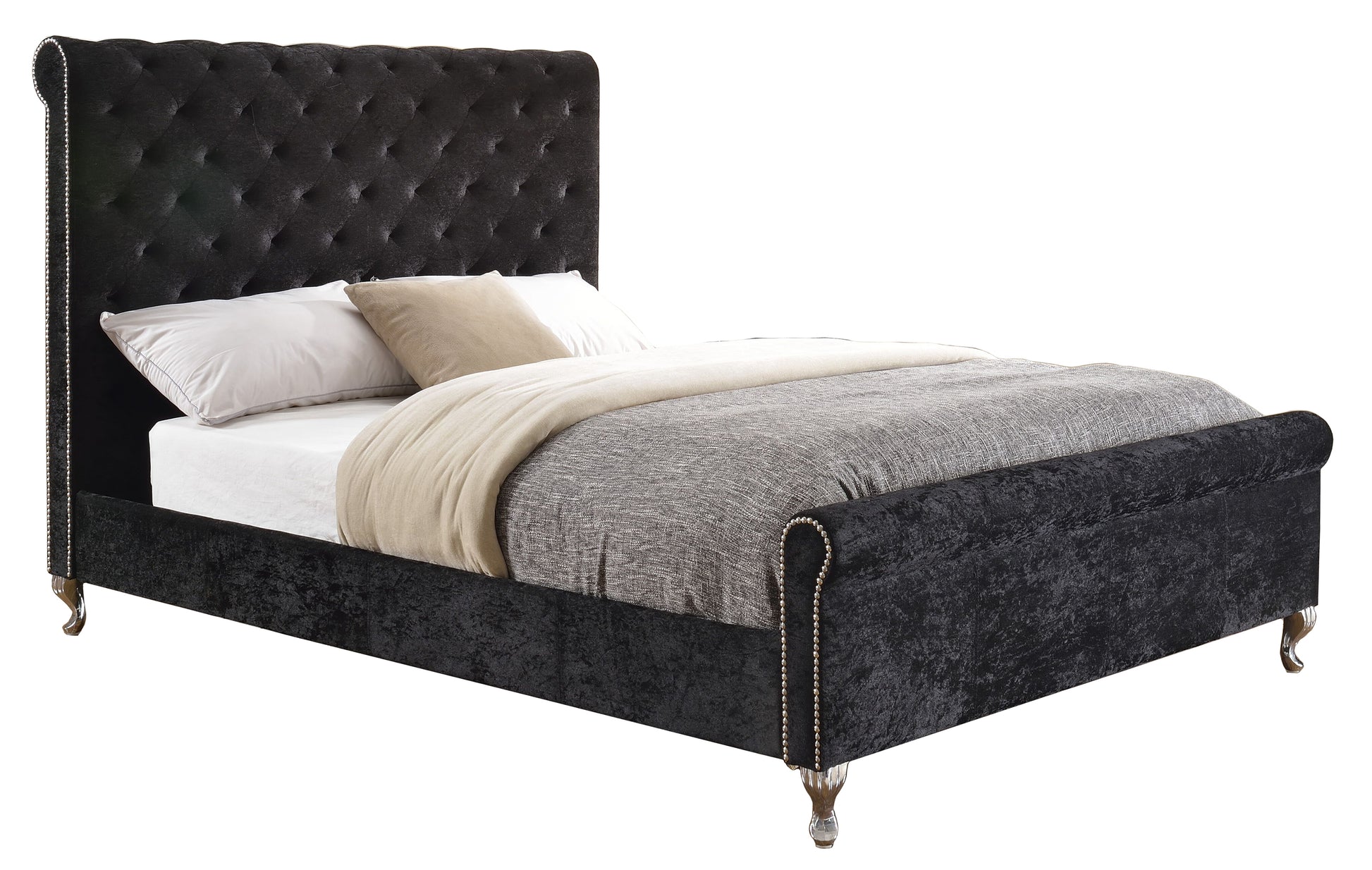 Vous chercherez n'importe quelle excuse pour aller au lit lorsque vous introduirez ce superbe lit dans votre espace de sommeil. Très moderne mais fidèle à l'attrait traditionnel, ce cadre de lit est enveloppé d'un tissu chenille tissé serré et repose sur des pieds en métal chromé solides et incurvés. Le cadre de lit attire l'attention avec son capitonnage en grille de diamants et ses détails cloutés. Une touche de luxe s'équilibre magnifiquement avec ce lit incroyablement attrayant.
