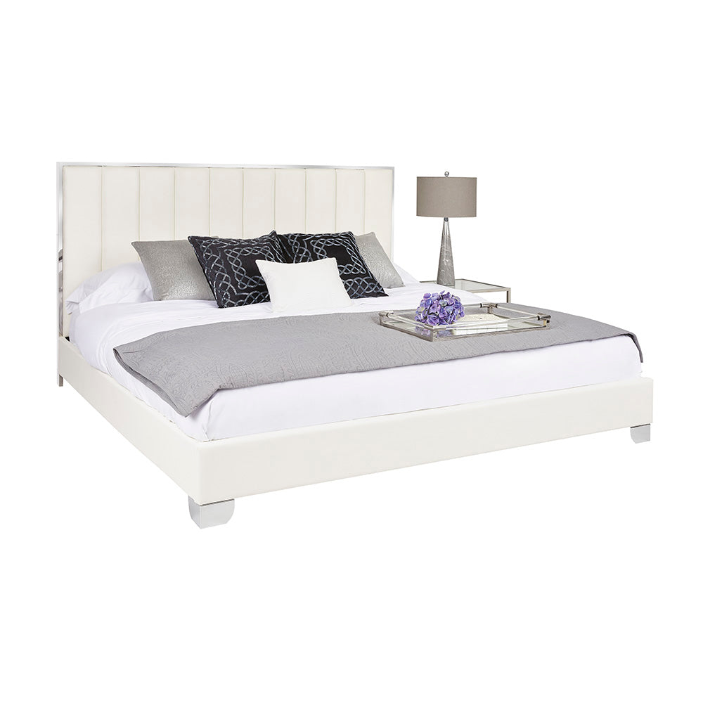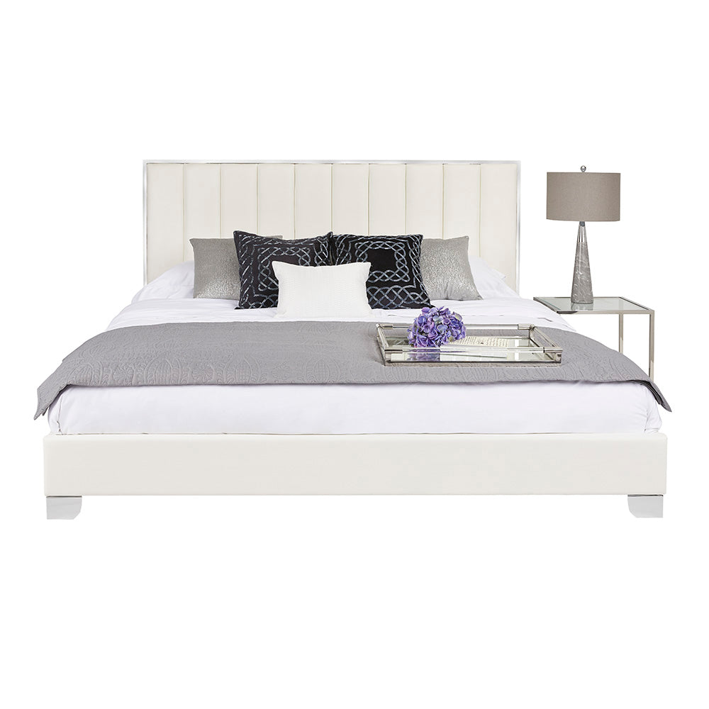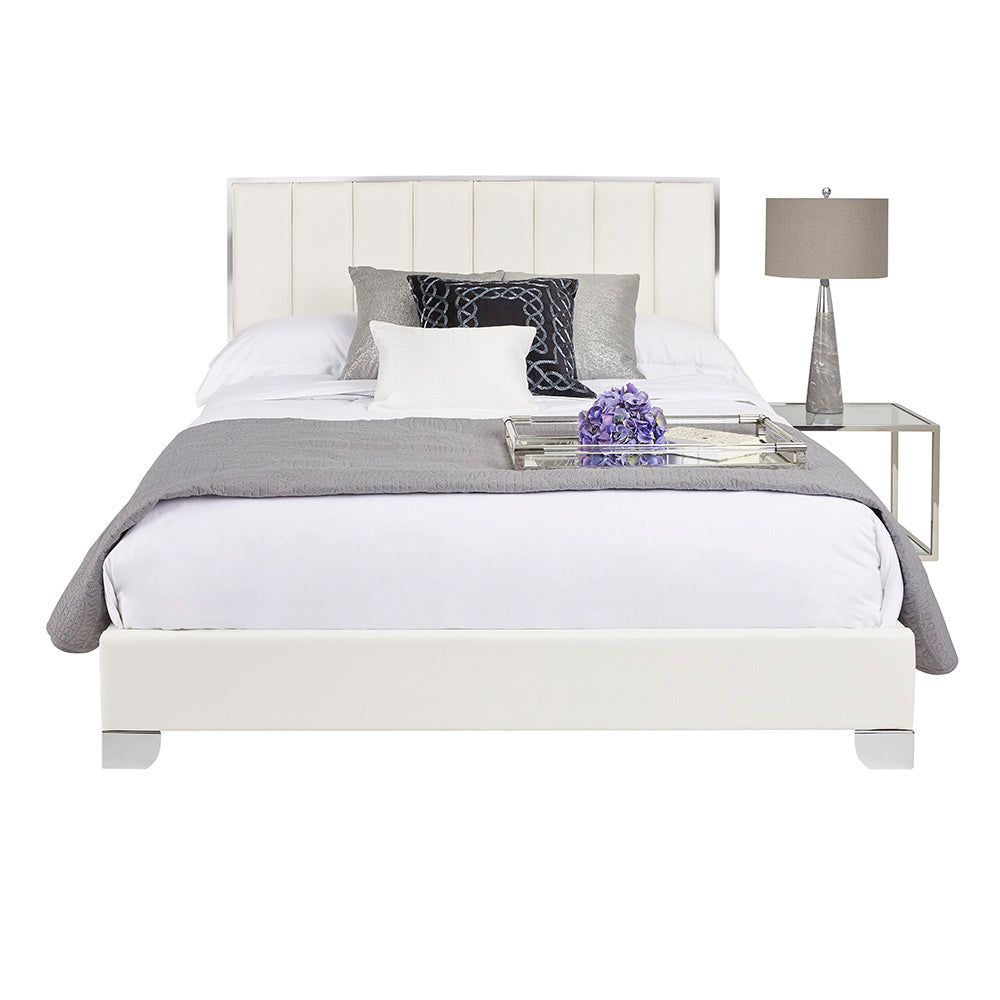 - Lit rembourré avec cadre en acier autour de la tête de lit