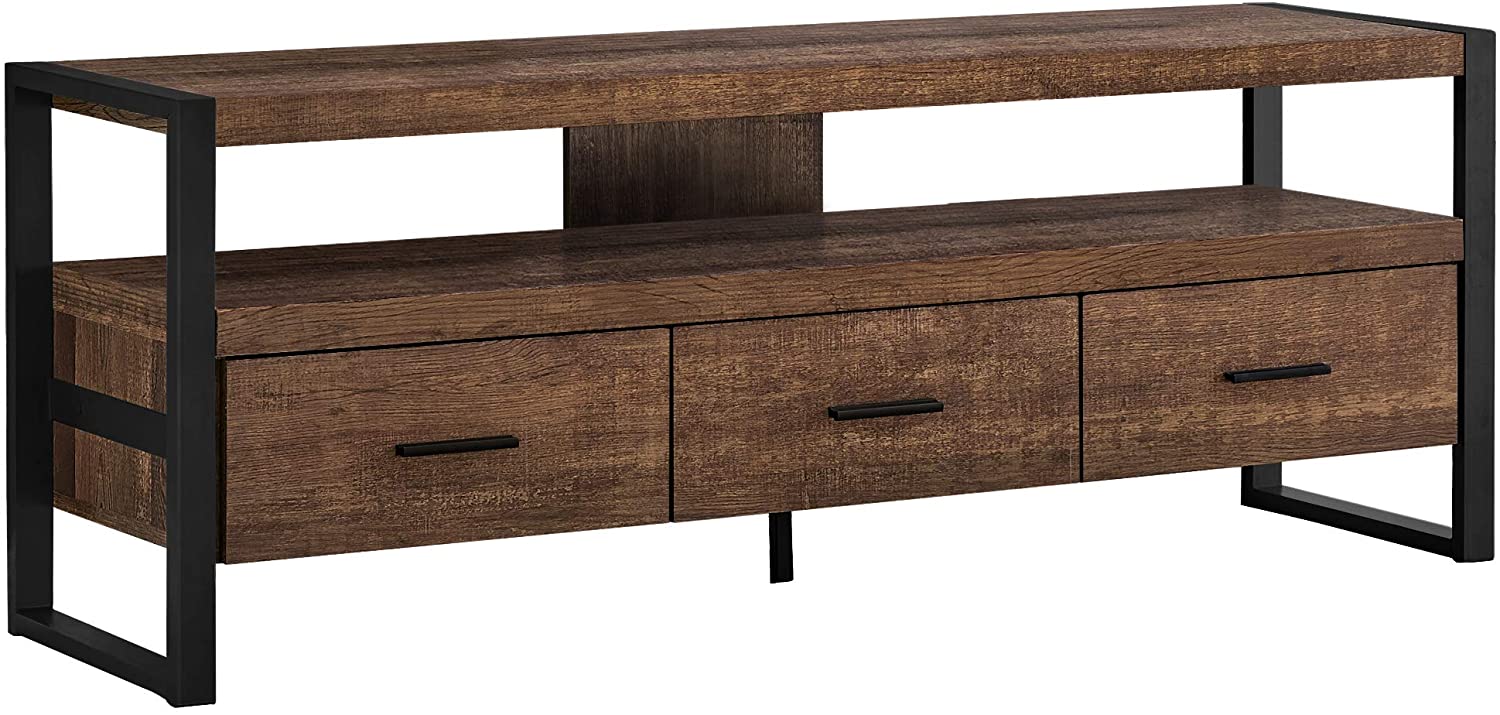 MEUBLE TV - 60"L / FAUX BOIS BRUN / 3 TIROIRS
