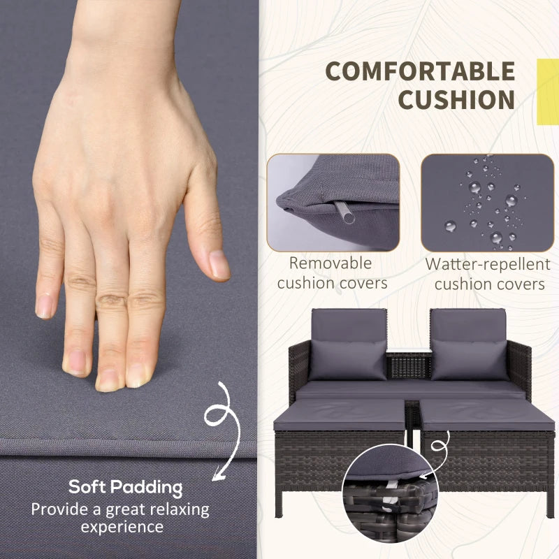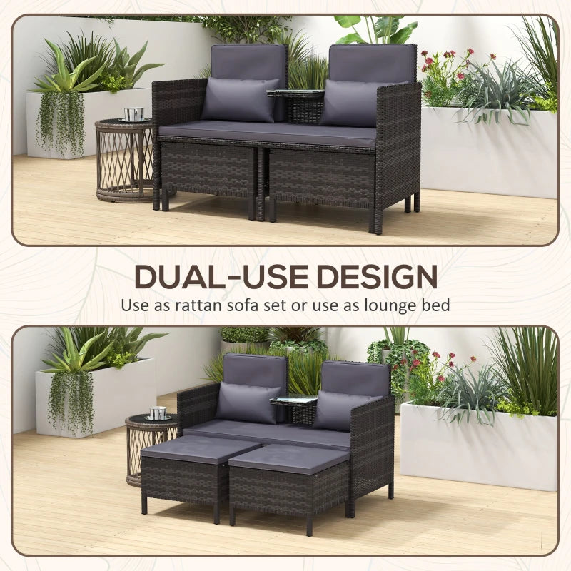 - Options de sièges polyvalentes : cet ensemble de canapés en rotin se convertit facilement entre des sièges doubles et simples, offrant des options d'agencement flexibles pour vos besoins en mobilier de balcon, garantissant confort et style dans n'importe quel environnement extérieur.