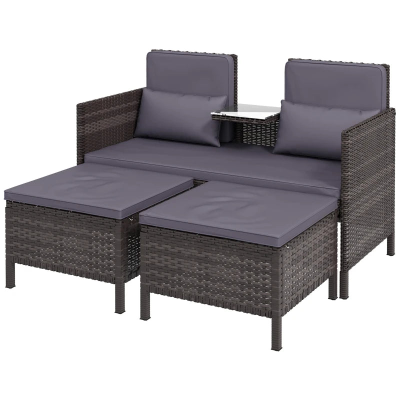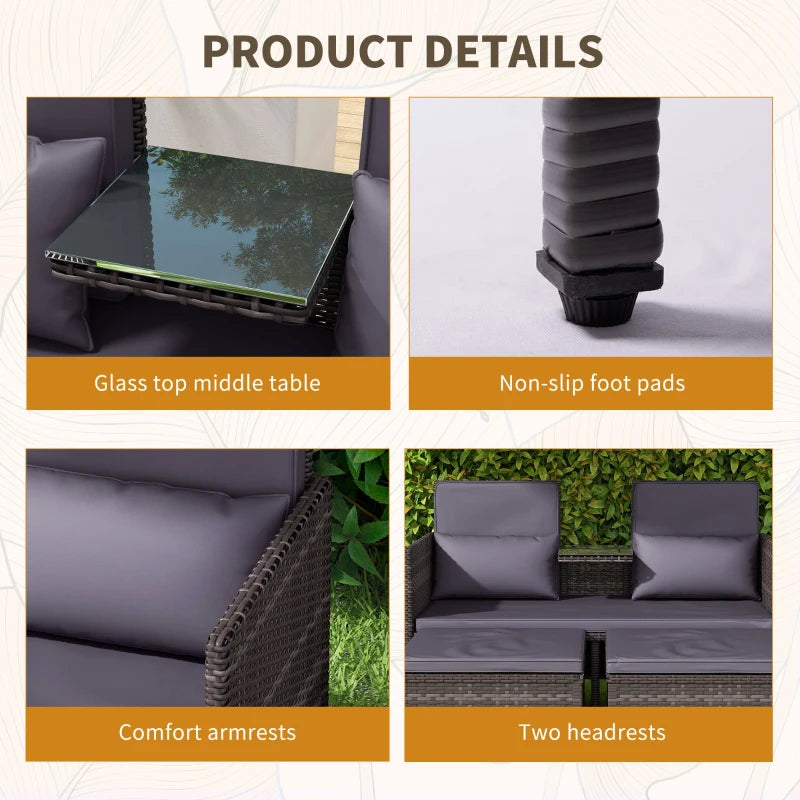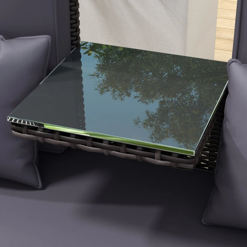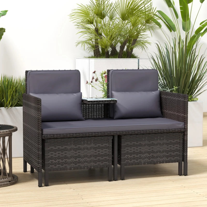 - Design élégant : doté d'une chaise double avec une table basse centrale, cet ensemble de patio 3 pièces est rehaussé d'un plateau en verre trempé, idéal pour prendre un verre sur votre terrasse ou dans votre jardin.