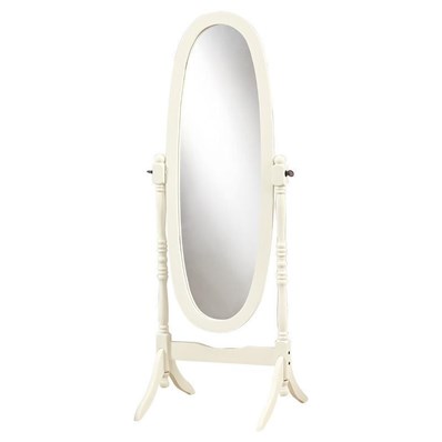 Ajoutez une touche de charme intemporel à une chambre ou une salle de bain avec ce miroir traditionnel en bois sur pied. Il présente les traits caractéristiques de ce style durable : poteaux latéraux tournés élégants, pieds de support incurvés et vis à anneau décoratives. Pour plus de commodité, le miroir s'incline afin que vous puissiez voir votre reflet sur toute la longueur dans la grande surface en verre de forme ovale lorsque vous vous habillez le matin pour le travail ou le soir pour un dîner avec des amis. Fabriqué en bois massif et fini en blanc antique, ce miroir autoportant robuste est suffisamment léger pour être portable et comprend un croisillon pour plus de stabilité.