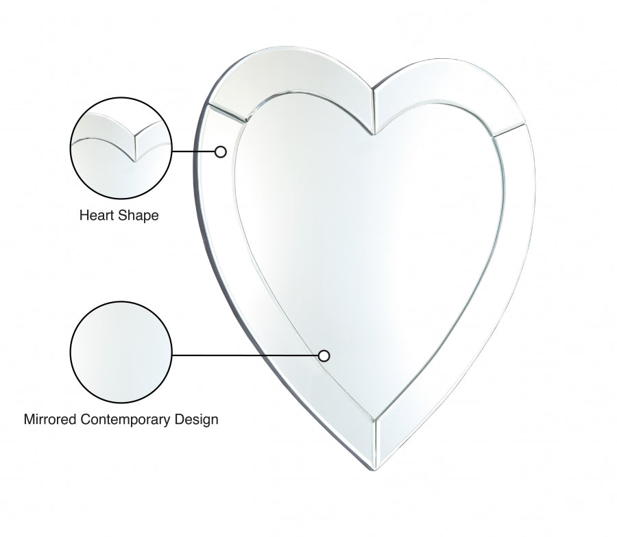 Faites vibrer les cœurs avec ce miroir Heart de Meridian Furniture. Cette jolie pièce présente une finition miroir sur toute la surface pour toucher le cœur de tout amateur de décoration. Le design contemporain convient à toutes les pièces modernes, du hall d'entrée à la chambre à coucher, et la grande taille du miroir en fait une option appropriée pour embellir l'espace au-dessus de votre lavabo ou de votre tête de lit.