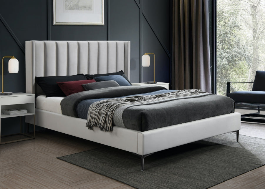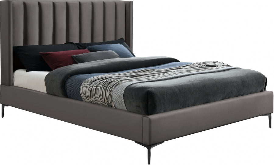 Réorganisez l'espace de votre chambre avec ce lit en velours Nadia. Charmant et accrocheur, ce joli lit est doté d'une tête de lit ultra-haute, spectaculaire et amusante, qui offre le bon endroit pour s'appuyer contre le dos pendant que vous regardez la télévision ou lisez. Un capitonnage à canaux verticaux profonds et une conception à oreilles ajoutent à l'aspect luxueux de cette tête de lit, et le tissu en velours doux assure son attrait visuel sous tous les angles. Les pieds en métal noir mat finissent le lit et offrent un dégagement en dessous pour le balayage.