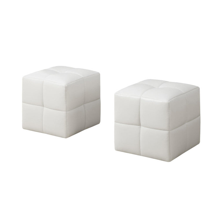 - Ensemble de 2 poufs pour enfants en forme de cube amusant et recouverts d'un tissu d'apparence cuir blanc