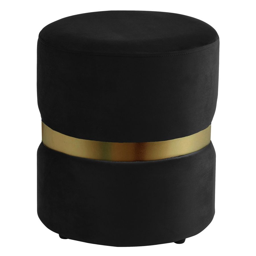 Ajoutez une touche de glamour à n'importe quel espace avec ce pouf en velours doux et luxueux. Le design contemporain et minimal lui permet d'être fonctionnel dans de petits espaces ou d'être utilisé comme siège fonctionnel dans un dressing ou pour une vanité de maquillage. Avec une "ceinture" en métal doré brossé, ce pouf ne se contente pas d'accentuer son espace de vie mais le met en valeur avec une atmosphère élégante et stylistique qui lui est propre.