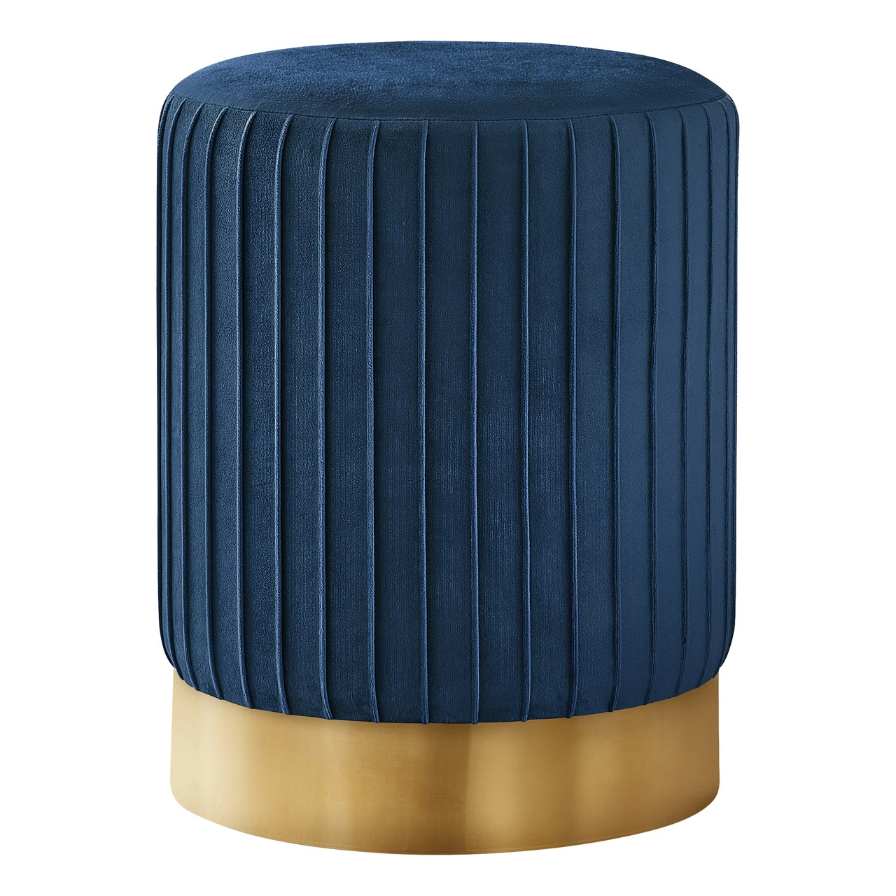 Ce pouf exceptionnel attire l'attention avec sa forme cylindrique unique et ses détails distinctifs. Recouvert d'un tissu de velours bleu au toucher luxueux, les côtés hauts sont plissés pour un attrait visuel et textuel tandis que le siège rembourré est lisse pour offrir un confort supérieur. Une base en métal robuste au fini doré brillant complète le look glamour moderne. Aussi polyvalent que chic, ce pouf rond est idéal dans un salon ou une chambre comme repose-pieds pour reposer vos pieds et comme table de fortune pour placer un livre ou un appareil mobile, ou comme pouf où et quand vous avez besoin d'un siège supplémentaire .