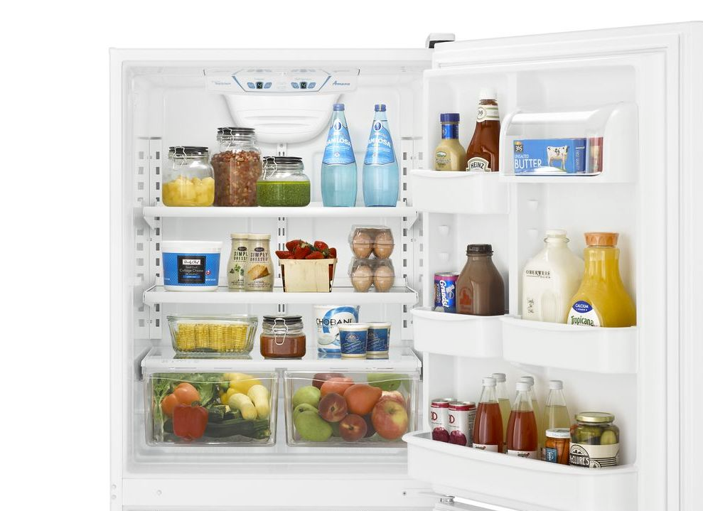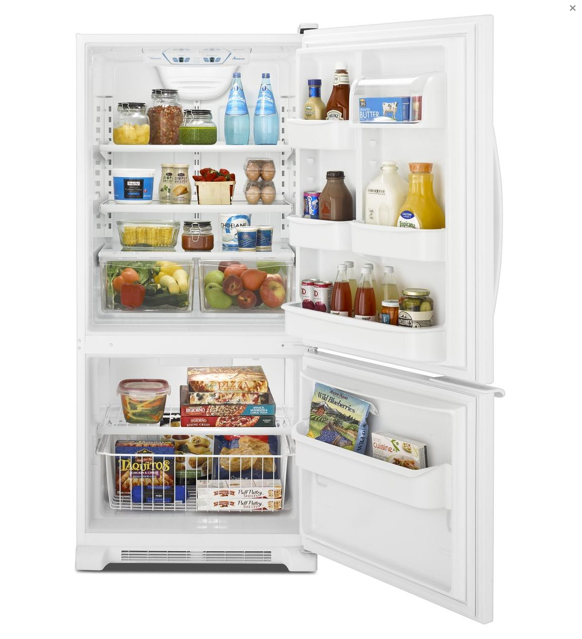 Cet réfrigérateur Amana 18,5 pi. cu. à congélateur inférieur vous aide à économiser de l'énergie et de l'argent... Il est doté d'une porte battante réversible et s'adapte à ce que vous rapportez du marché avec des options de rangement polyvalentes, comme deux bacs à légumes à humidité contrôlée, un rangement de porte d'un gallon et deux étagères en verre pleine largeur. Les commandes de fraîcheur placent des températures constantes à portée de main, tandis que la conception essentielle signifie que les aliments frais que vous utilisez le plus sont juste au niveau des yeux pour un accès facile.