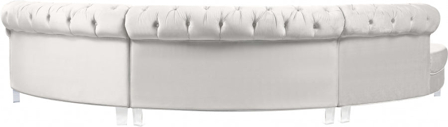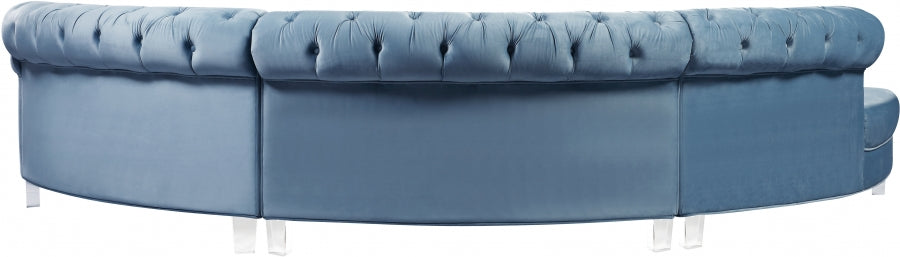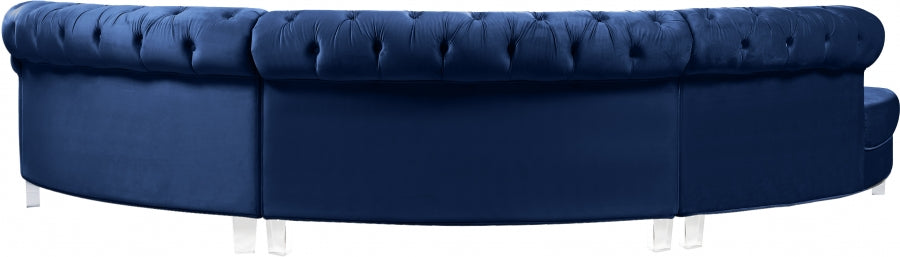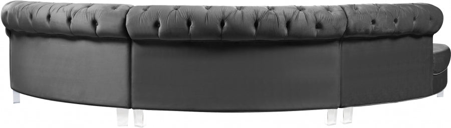 Asseyez-vous et détendez-vous après une longue journée de travail sur ce 3 pièces en velours Anabella. Sectionnel de Meridian Furniture. Le revêtement en velours riche est complété par un capitonnage profond et des têtes de clous chromées, créant une pièce contemporaine parfaite pour n'importe quelle pièce de votre espace de vie. Les pattes en acrylique lucite complètent le design de cet élégant sectionnel, offrant à sa structure un support solide ainsi qu'un équilibre pour sa luxueuse .
