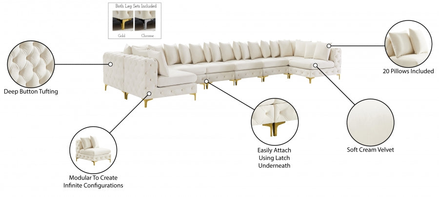 Asseyez-vous et détendez-vous sur ce sectionnel Tremblay. Doté d'un revêtement en velours doux avec un capitonnage profond, ce canapé sectionnel ajoute une touche audacieuse à n'importe quel espace de vie. Un ensemble complet de pieds dorés et chromés est inclus, vous pouvez donc le modifier en fonction de votre décor. Ce sectionnel est modulaire, vous pouvez donc créer des configurations infinies, qui se fixent facilement à l'aide du loquet situé sous le cadre. Son design contemporain est parfait pour la maison moderne.