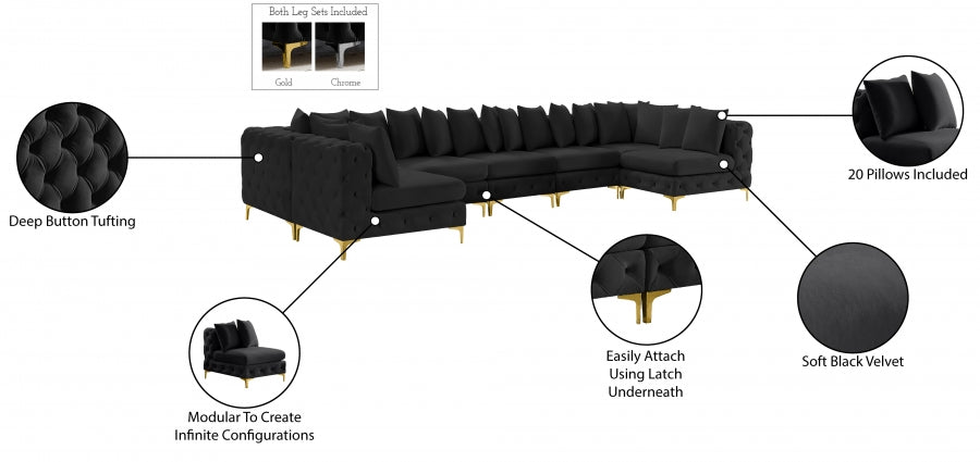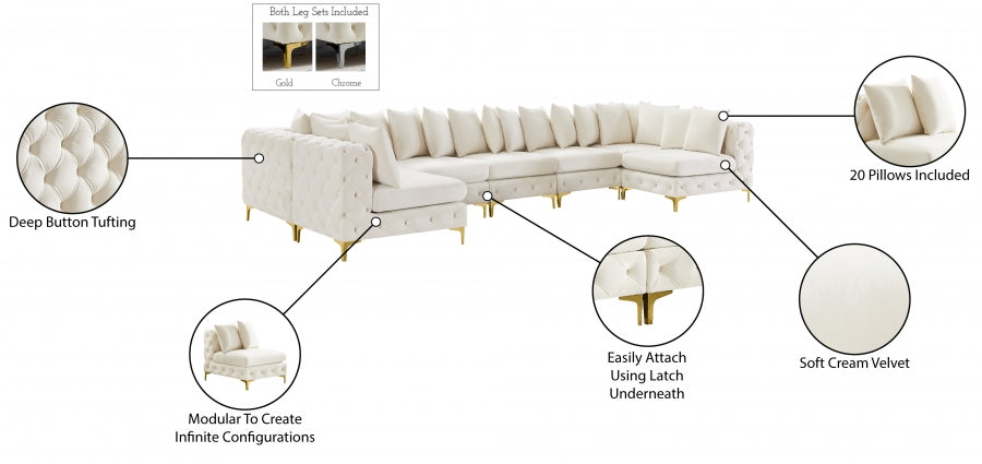 Asseyez-vous et détendez-vous sur ce sectionnel Tremblay. Doté d'un revêtement en velours doux avec un capitonnage profond, ce canapé sectionnel ajoute une touche audacieuse à n'importe quel espace de vie. Un ensemble complet de pieds dorés et chromés est inclus, vous pouvez donc le modifier en fonction de votre décor. Ce sectionnel est modulaire, vous pouvez donc créer des configurations infinies, qui se fixent facilement à l'aide du loquet situé sous le cadre. Son design contemporain est parfait pour la maison moderne.