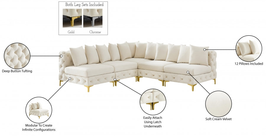 Asseyez-vous et détendez-vous sur ce sectionnel Tremblay. Doté d'un revêtement en velours doux avec un capitonnage profond, ce canapé sectionnel ajoute une touche audacieuse à n'importe quel espace de vie. Un ensemble complet de pieds dorés et chromés est inclus, vous pouvez donc le modifier en fonction de votre décor. Ce sectionnel est modulaire, vous pouvez donc créer des configurations infinies, qui se fixent facilement à l'aide du loquet situé sous le cadre. Son design contemporain est parfait pour la maison moderne.