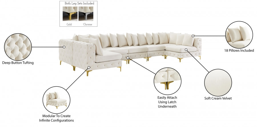Asseyez-vous et détendez-vous sur ce sectionnel Tremblay. Doté d'un revêtement en velours doux avec un capitonnage profond, ce canapé sectionnel ajoute une touche audacieuse à n'importe quel espace de vie. Un ensemble complet de pieds dorés et chromés est inclus, vous pouvez donc le modifier en fonction de votre décor. Ce sectionnel est modulaire, vous pouvez donc créer des configurations infinies, qui se fixent facilement à l'aide du loquet situé sous le cadre. Son design contemporain est parfait pour la maison moderne.
