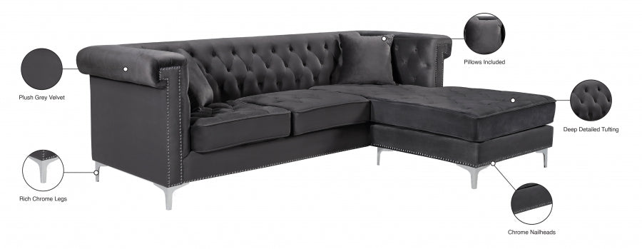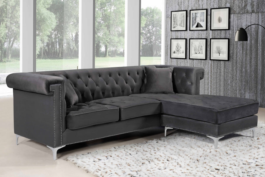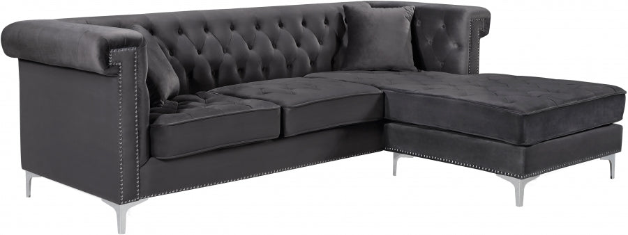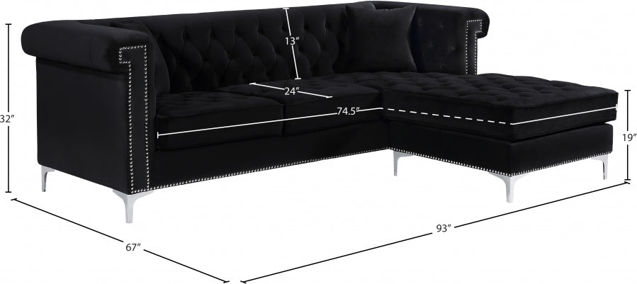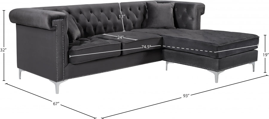 Détendez-vous et détendez-vous sur ce canapé sectionnel réversible en velours Damian 2 pièces. Une méridienne réversible à une extrémité vous assure d'avoir un endroit parfait pour une sieste, et les sièges sectionnels pour toute la famille, ce qui vous permet de rester à l'aise pendant que vous traînez. La couleur profonde rend ce canapé sectionnel facile à coordonner avec les éléments existants dans votre maison, et ses dossiers dodus et ses sièges moelleux garantissent que cette pièce deviendra rapidement le siège préféré de tous.