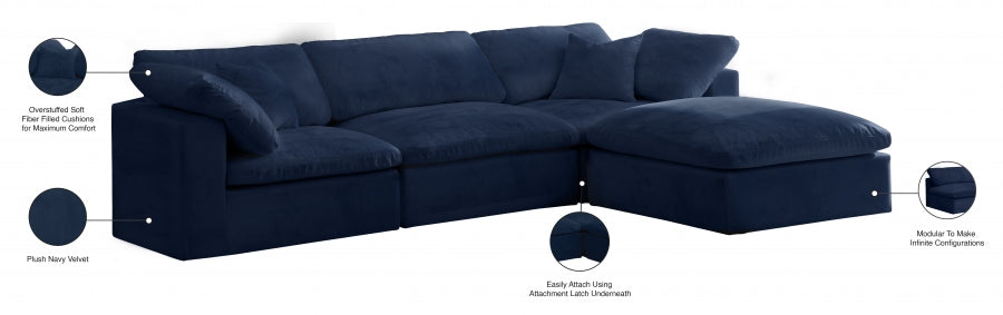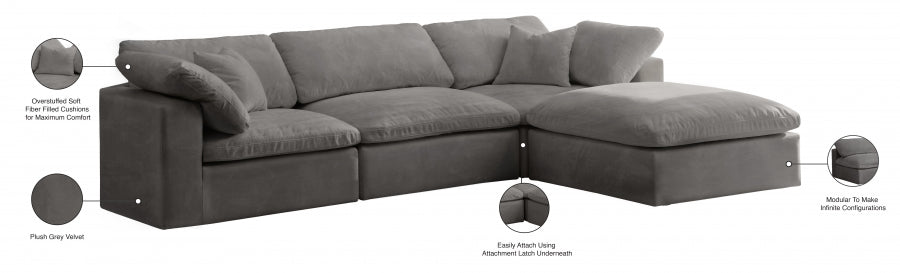 Apportez à la maison ce sectionnel Cosy 4 pièces pour un nouveau look. Adoptez l'élégance décontractée avec cette option de siège modulaire rembourrée en duvet de velours douillet. Belle sous tous les angles, cette pièce est dotée d'un revêtement en velours doux pour s'adapter facilement à n'importe quelle pièce. Cette pièce modulaire peut être combinée avec d'autres éléments de la collection Cosy pour créer un groupe de sièges de vos rêves. Les coussins de cette pièce sont exceptionnellement confortables et remplis de duvet pour le luxe que vous méritez pendant que vous vous reposez et vous détendez.