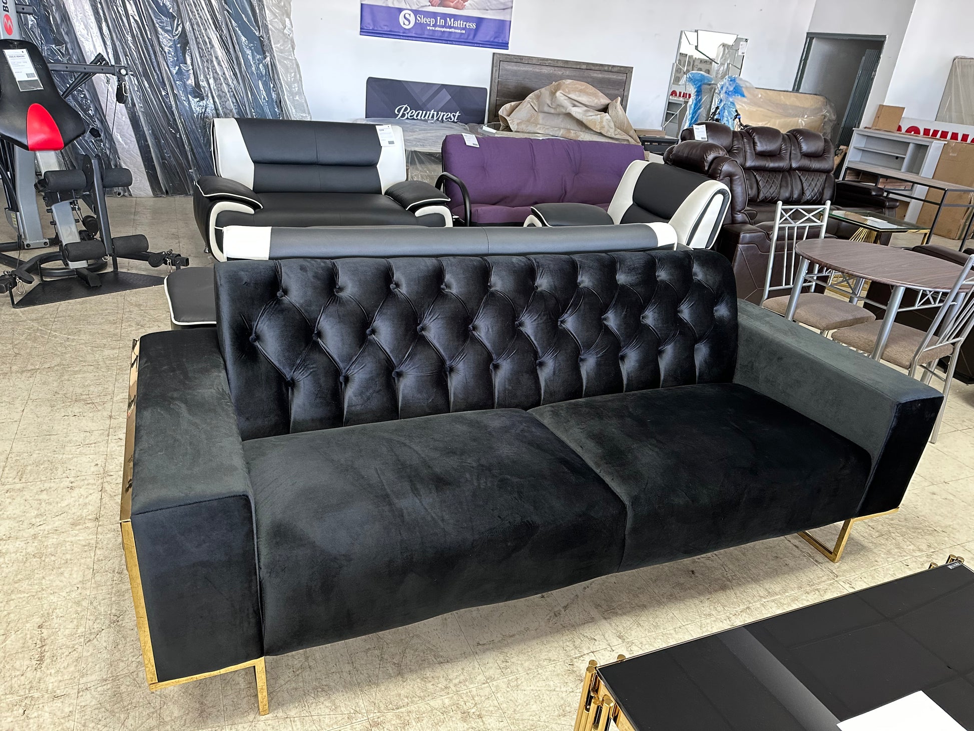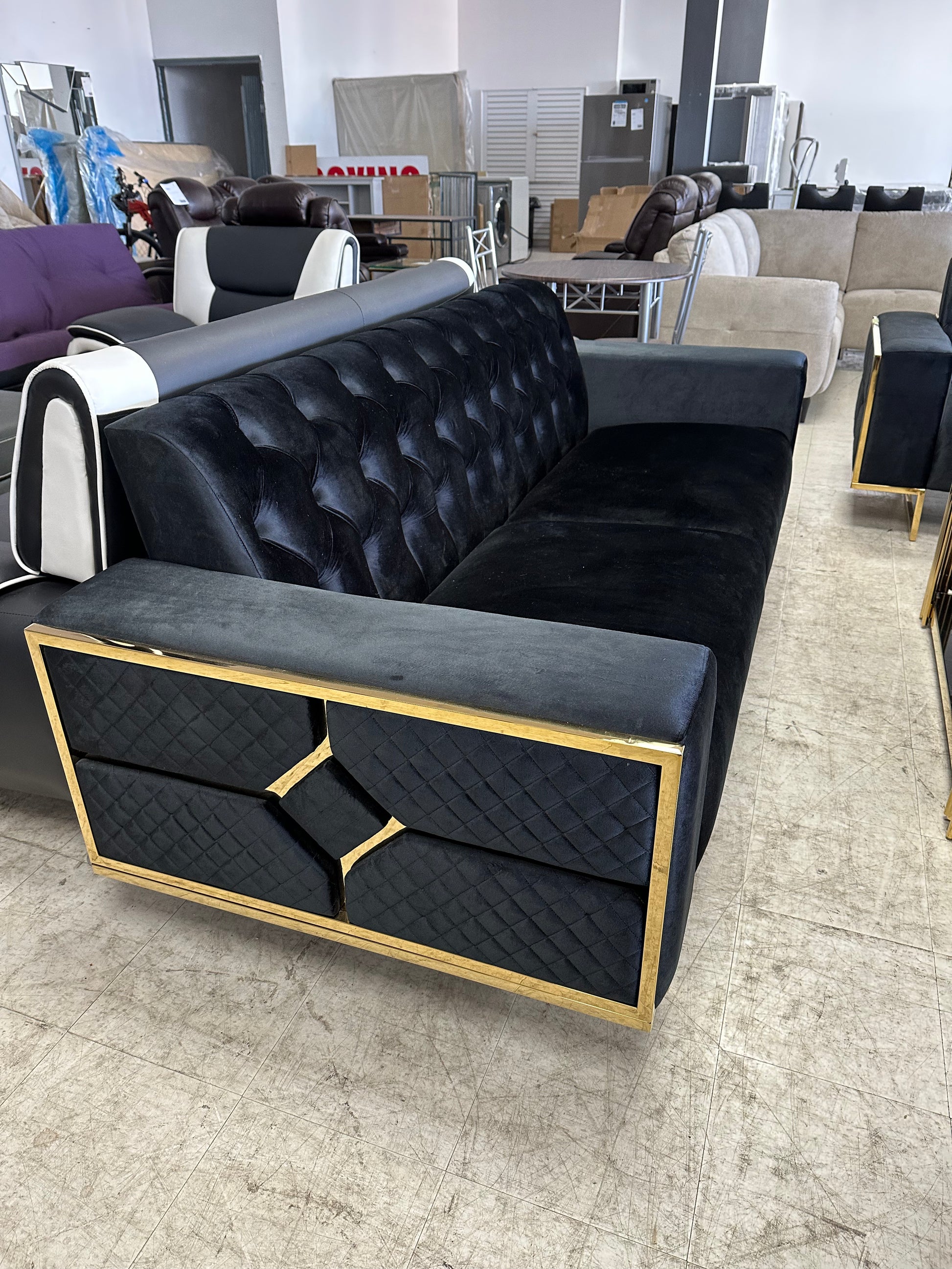 SET VELOURS NOIR AVEC DES ACCENTS DORÉS 2 MCX (Meuble Mtl)