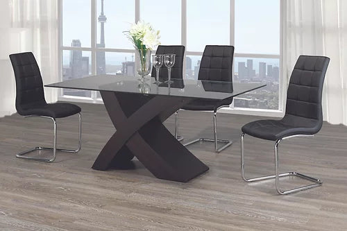 Table Table en verre trempé de 10 mm avec une forme en « X » et un cadre en verre trempé. Base expresso