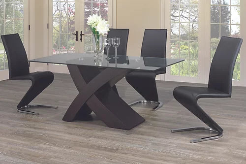 Table Table en verre trempé de 10 mm avec une forme en « X » et un cadre en verre trempé. Base expresso