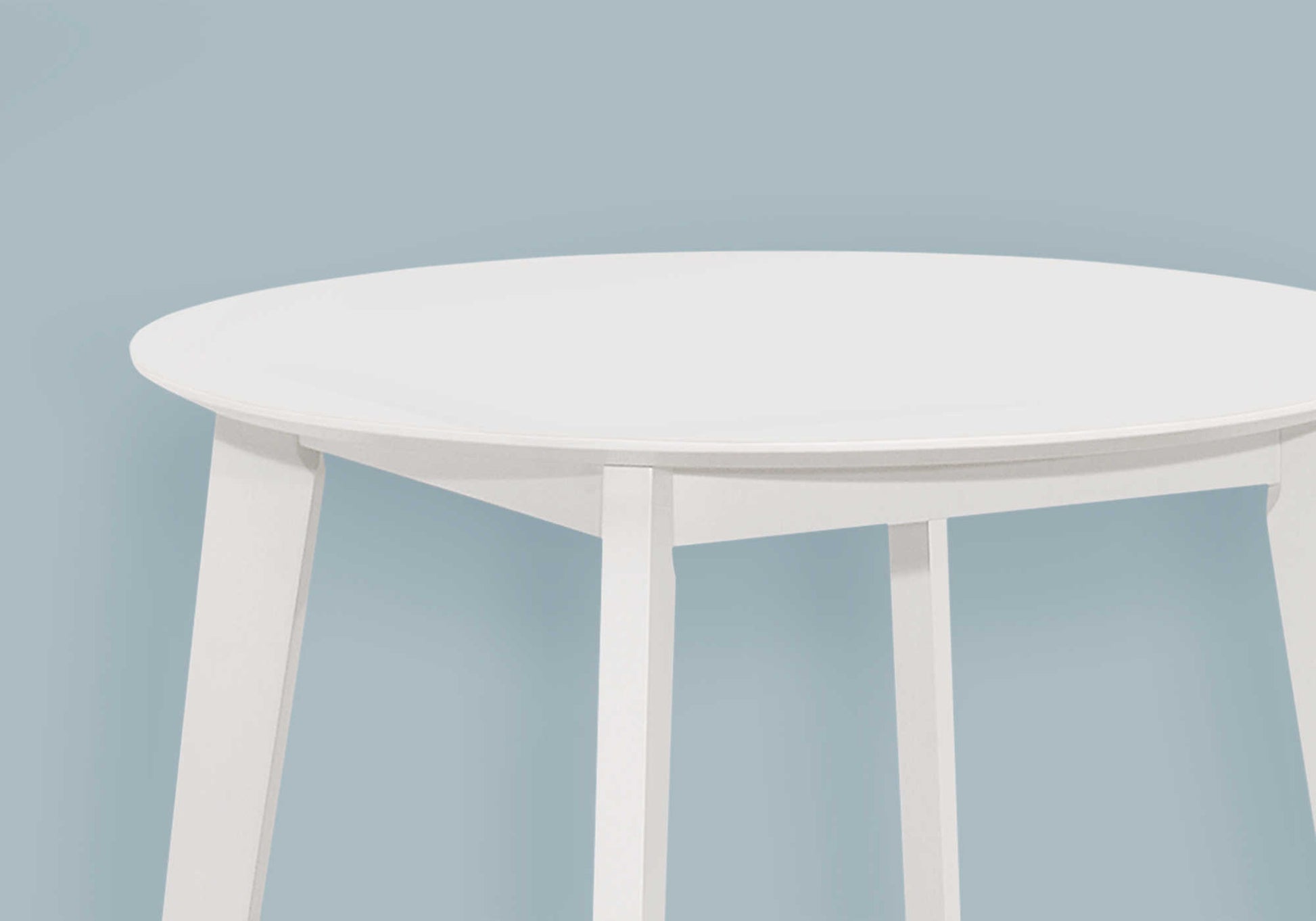 - Finie dans une finition en placage blanc lisse et durable sur tous les côtés avec des pieds en bois évasés et robustes pour le soutien, cette table s'intègre parfaitement dans une petite salle à manger ou une cuisine sans surcharger l'espace.