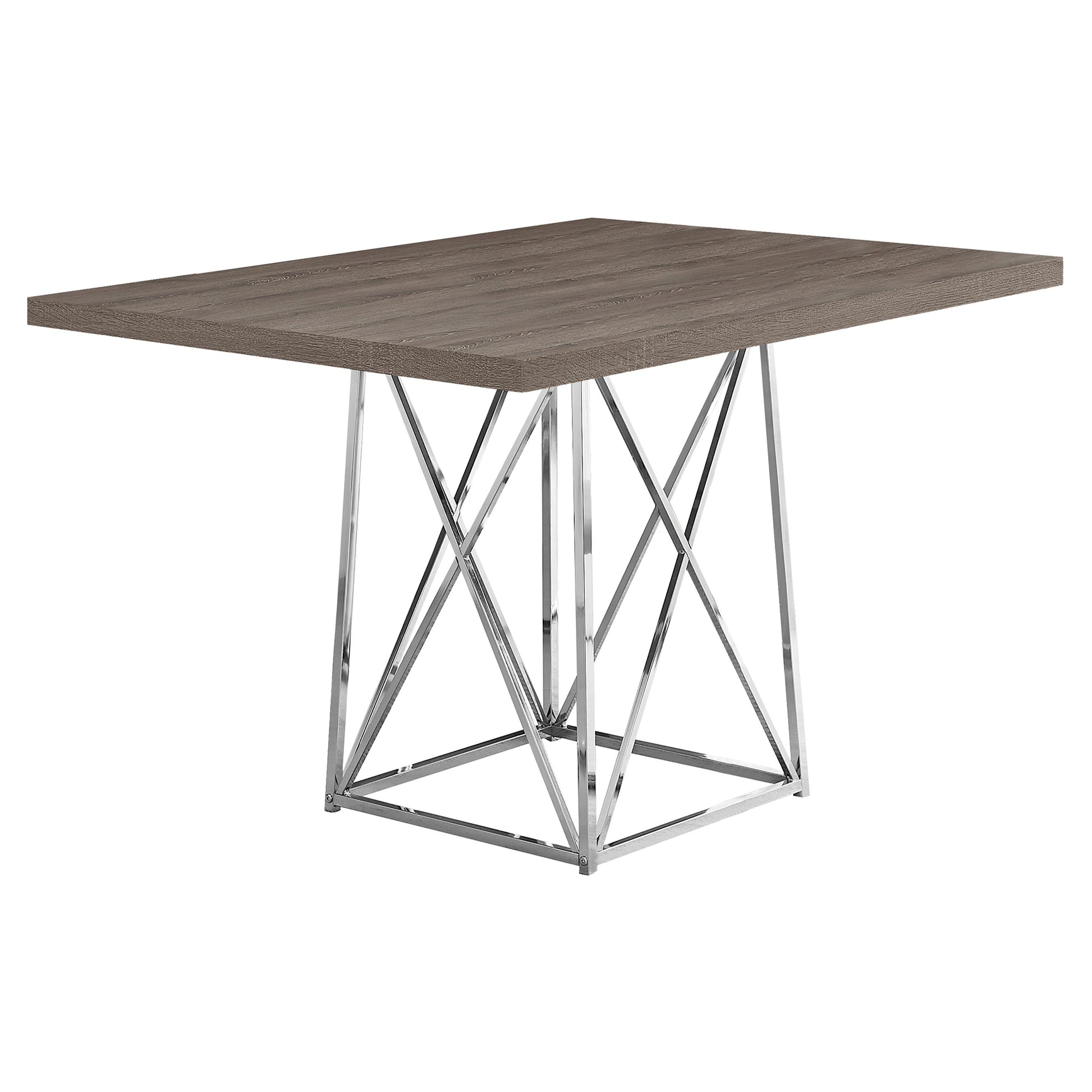 - Les pieds élégants en métal chromé ont un design en forme de X, ce qui ajoute un élément contemporain à la table de salle à manger en bois.