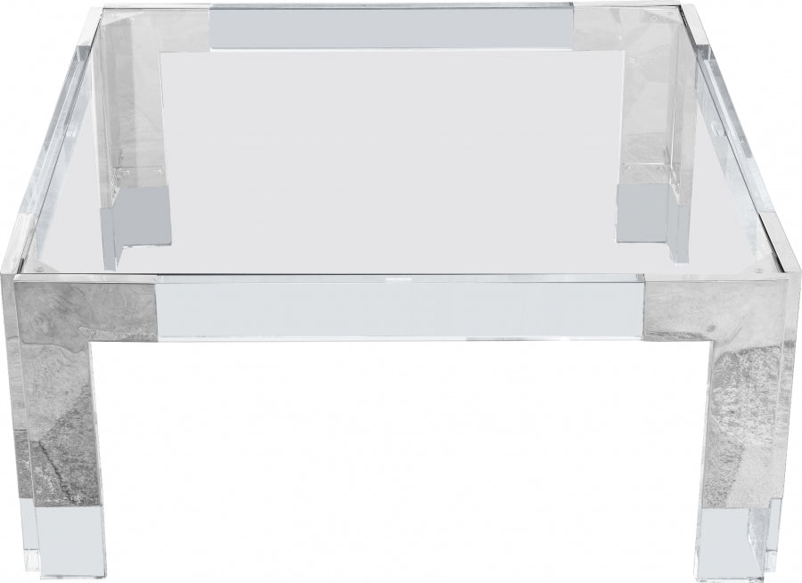Comptez sur cette table basse carrée Casper pour rehausser le look contemporain de votre maison. Le magnifique plateau en verre transparent laisse transparaître la beauté du bois. Les pieds en acrylique transparent et les accents en acier inoxydable chromé confèrent à la table un aspect riche. Insérez cette table dans votre salon, votre coin-détente ou votre salle familiale pour profiter d'un endroit artistique attrayant pour poser des livres, des magazines et des boissons.
