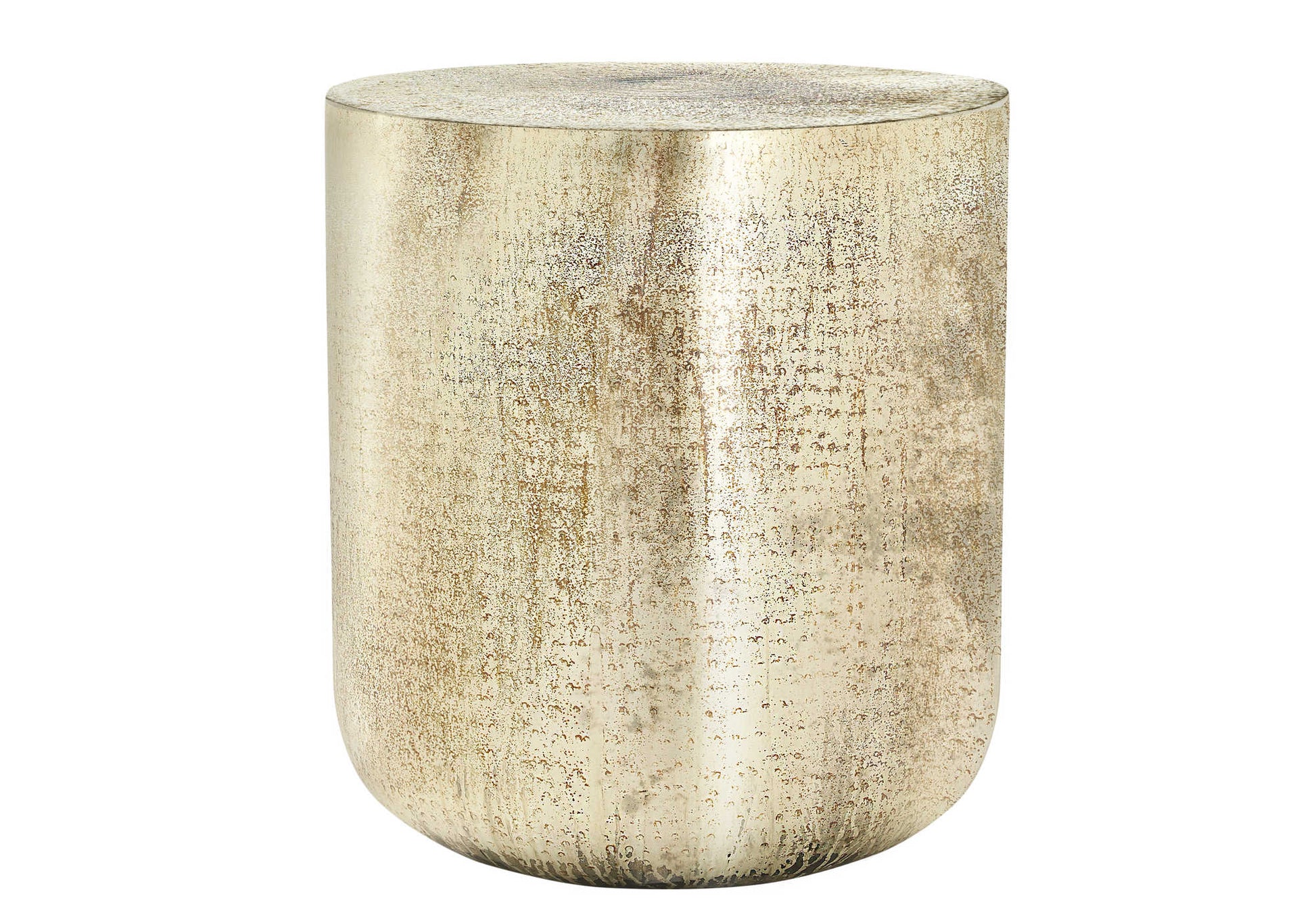 - Ce fabriqué à la main, 22quot; Cette table d'appoint haute en forme de tambour dans un métal doré antique et chaleureux confère une ambiance bohème-glam à un salon ou une chambre.