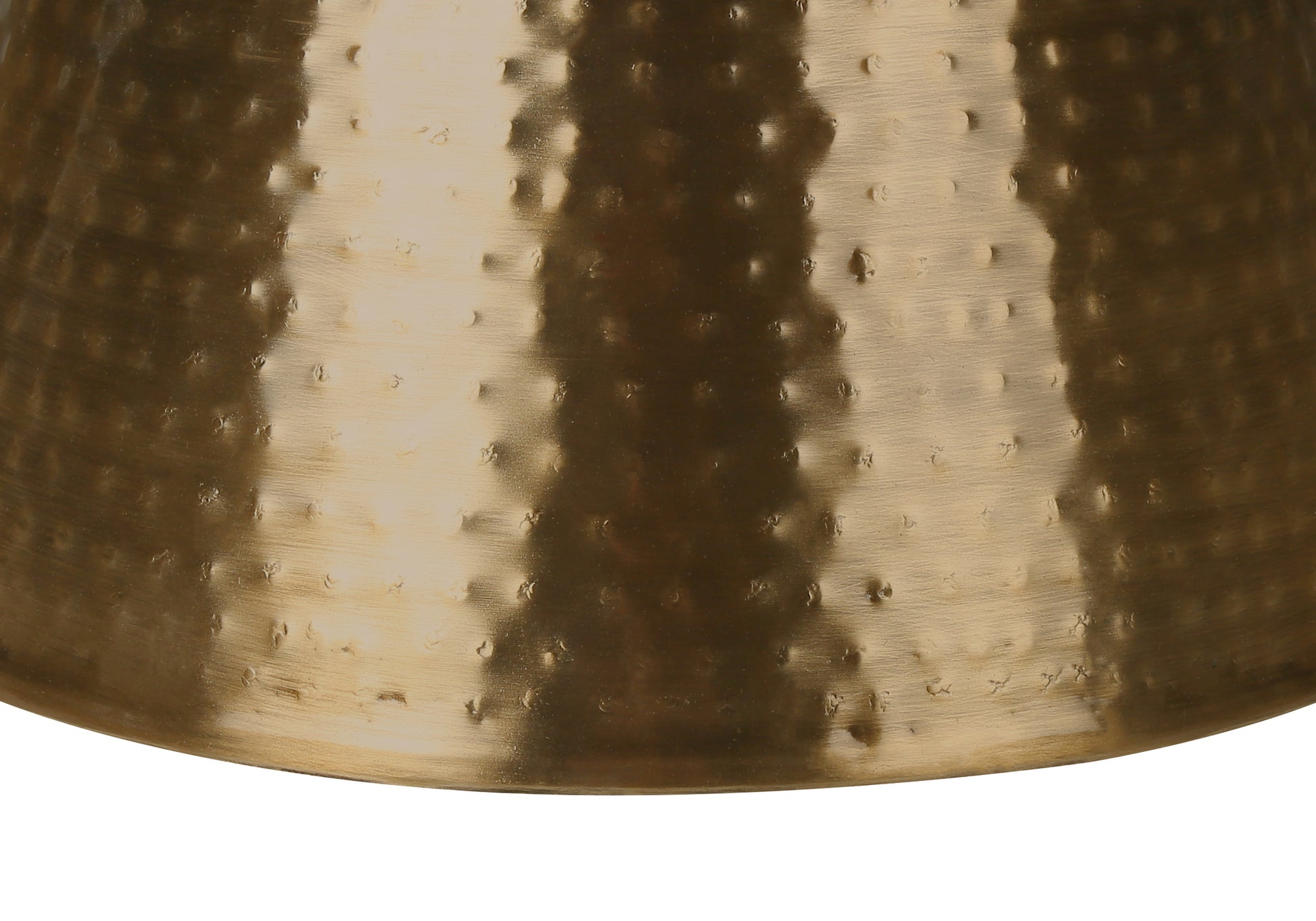 - Ce fabriqué à la main, 22quot; Cette table d'appoint haute avec un design martelé sur tous les côtés apporte une présence audacieuse et glamour à une pièce avec sa finition sophistiquée en métal cuivré en forme de sablier moderne.