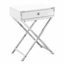 Le design glamour rétro sophistiqué de cette table d'appoint latérale/de bout apporte un style instantané à une pièce. Le dessus de table rectangulaire est fini dans un blanc brillant laminé sur un matériau MDF de qualité supérieure, et une simple poignée carrée en métal argenté intégrée pour ouvrir et fermer en douceur le tiroir de rangement spacieux. Les accents de coin en métal argenté lui donnent un look nostalgique avec une base assortie en X en métal chromé argenté pour unir le tout. À la fois contemporaine et classique, cette table d'appoint multifonctionnelle peut facilement être utilisée comme table de chevet ou comme table de bout à côté d'un canapé ou d'un fauteuil. La taille compacte le rend également parfait pour les petits espaces. L'assemblage est nécessaire.
