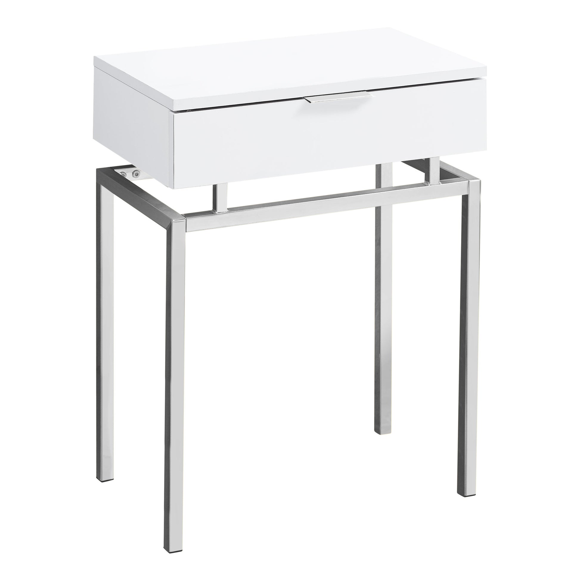 TABLE D'APPOINT - 24"H / BLANC BRILLANT / METAL CHROME