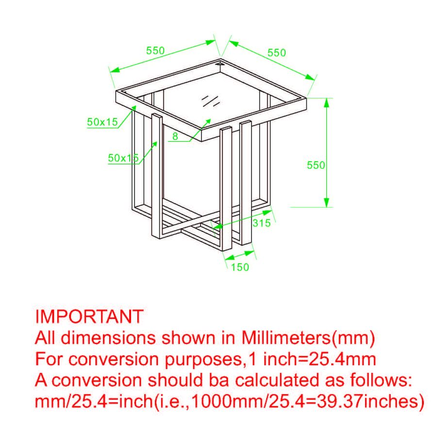 - Dimensions : 21,75 x 21,75 x 21,75"H
