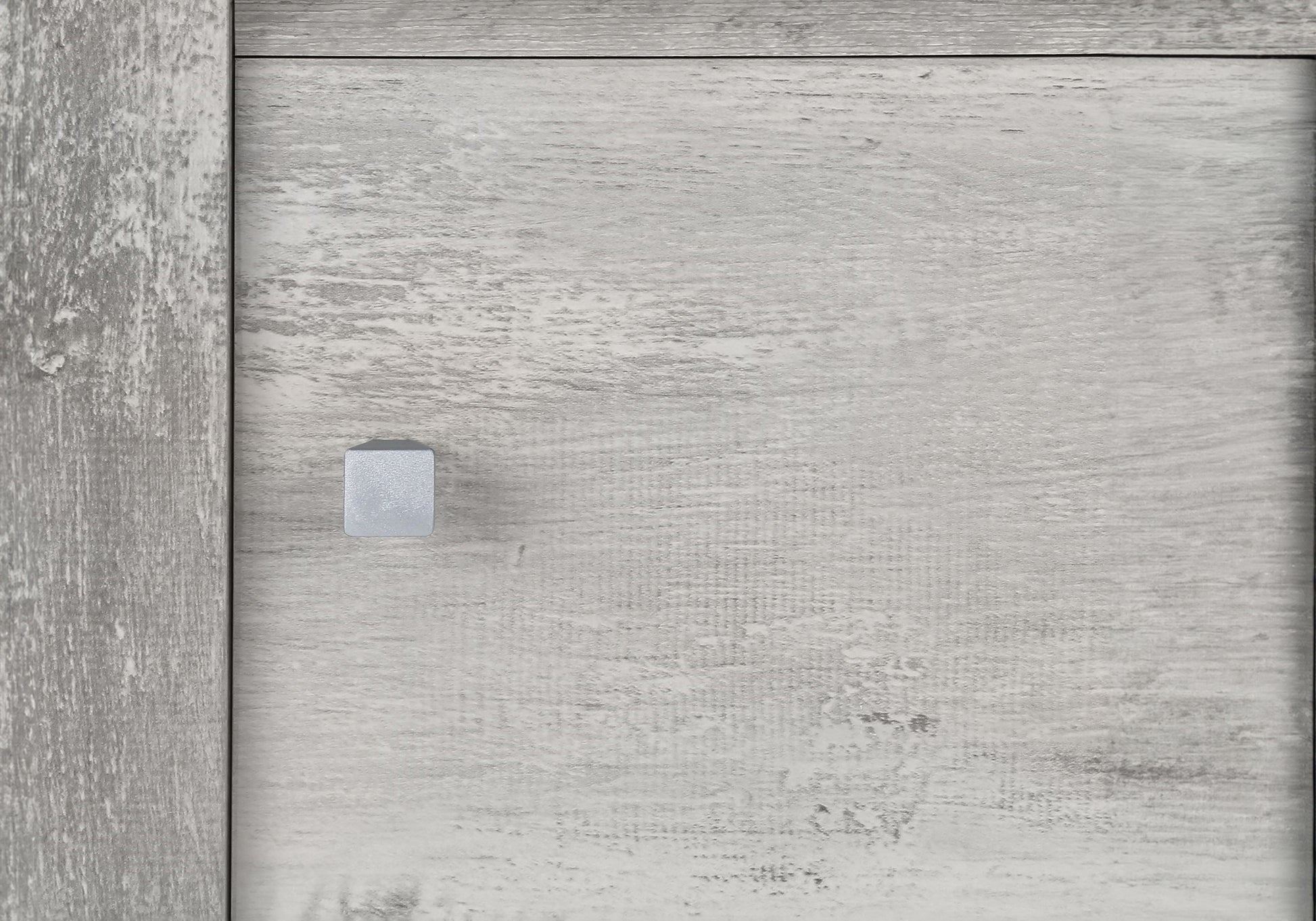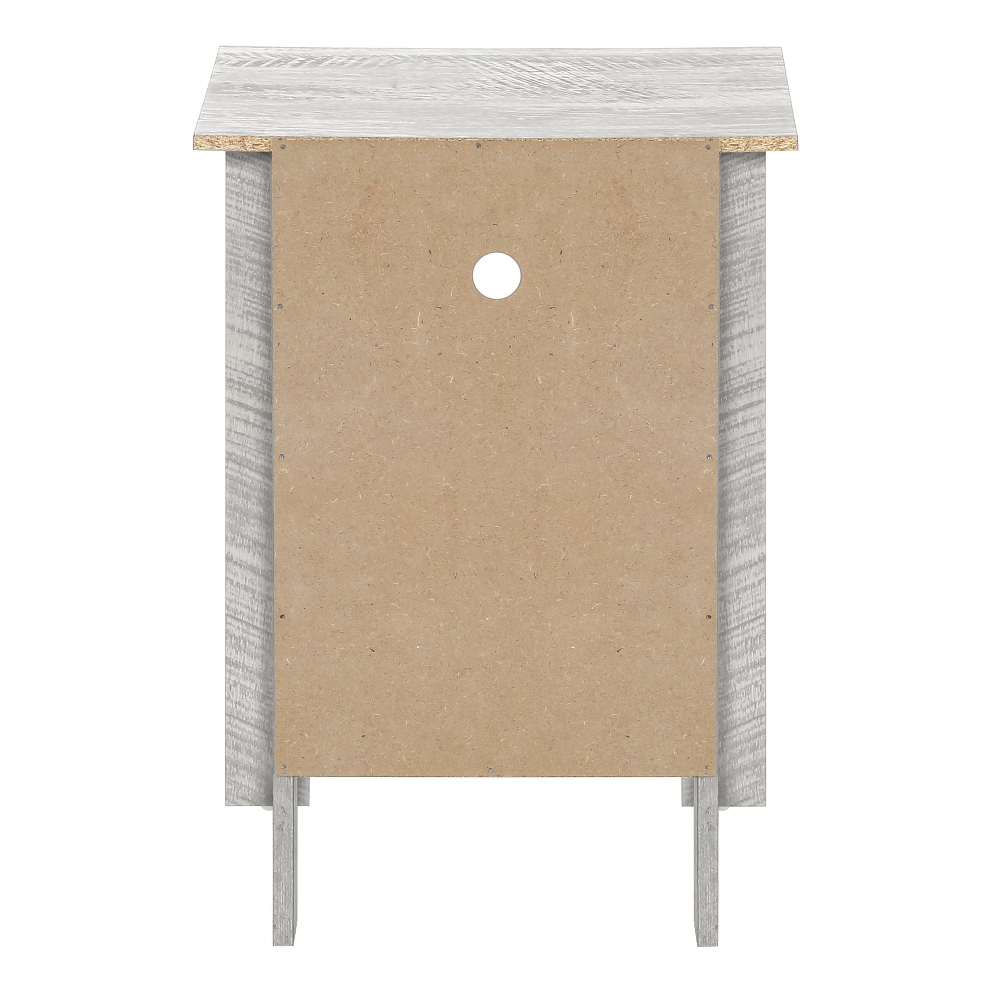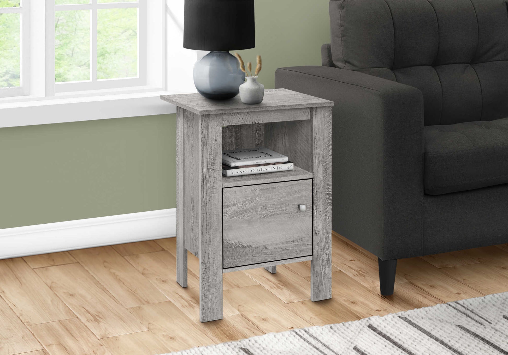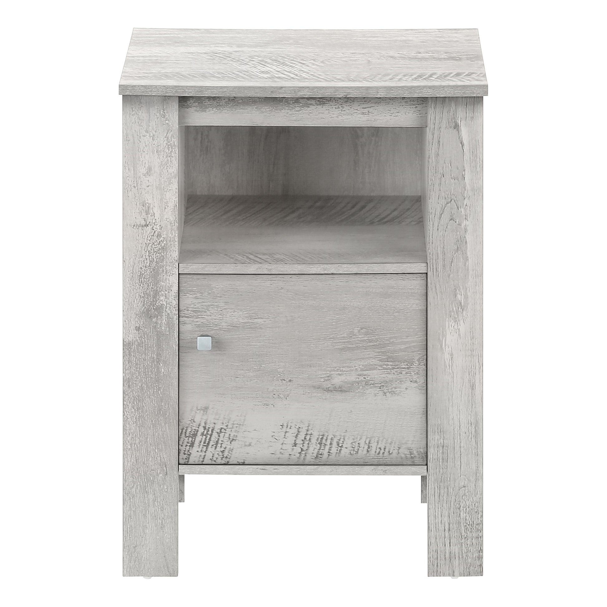 - Avec une touche de rustique, cette table d'appoint pratique offre une grande surface grâce à une étagère intérieure ouverte et une armoire fermée avec un élégant bouton carré argenté.