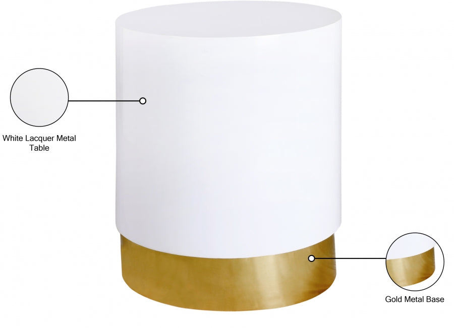 Donnez à votre espace de vie une métamorphose audacieuse avec cette table en métal laqué blanc à couper le souffle avec une base en métal doré de Meridian Furniture. Son design rond et contemporain se marie parfaitement avec tous les meubles modernes existants dans votre maison. Utilisez-le comme pièce d'appoint, table principale ou table basse dans n'importe quelle pièce de votre maison. Sa couleur blanche pure se compare bien à la base en métal doré, qui offre un support solide en plus d'être fabuleuse.