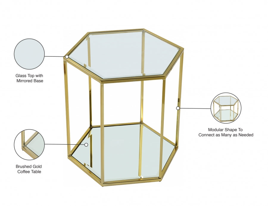 Cette table de bout SEI vous donne le contrôle total de l'apparence de votre espace. Utilisez une seule table pour un petit espace ou assemblez deux tables ou plus pour un look élargi lorsque la soirée de jeu nécessite plus d'espace pour vous étendre. Le magnifique cadre en or brossé contient un dessus en verre avec une base en miroir et une étagère inférieure parallèle en miroir. La conception modulaire vous permet de connecter autant de tables que nécessaire pour une solution personnalisée à vos besoins.