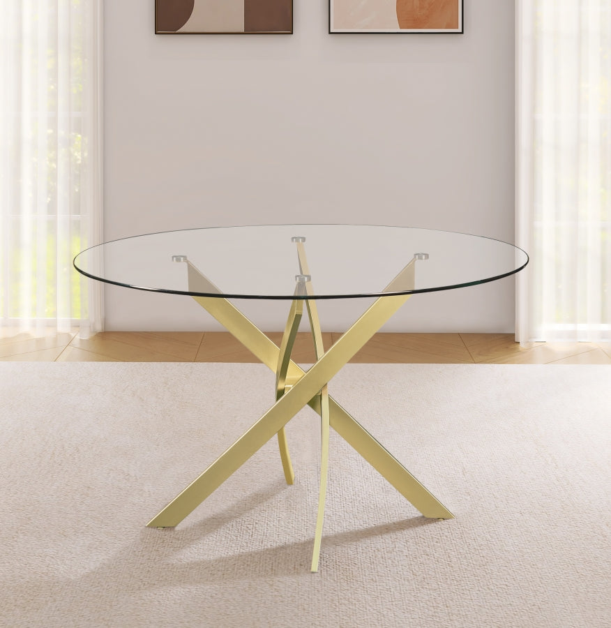 Élégante et accrocheuse, la superbe table de salle à manger Xander en or brossé de Meridian Furniture est le complément parfait à tout espace.