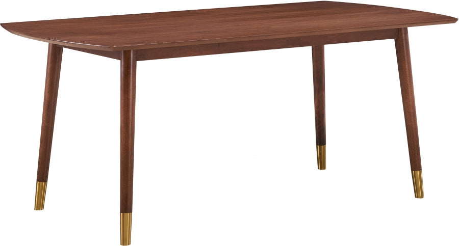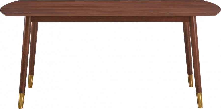 Rassemblez-vous en famille ou entre amis pour dîner, travailler ou jouer à des jeux sur cette table de salle à manger en bois Sherwood. Une finition noyer attrayante et une forme rectangulaire lui permettent de se fondre avec d'autres meubles, et son style moderne du milieu du siècle est intemporel. Le plateau rond est perché sur quatre pieds effilés à pointe dorée, et des chaises confortables assorties sont également disponibles pour compléter le look. Parfait pour un appartement ou une cuisine, la petite taille de cette table signifie qu'elle peut s'adapter presque n'importe où.