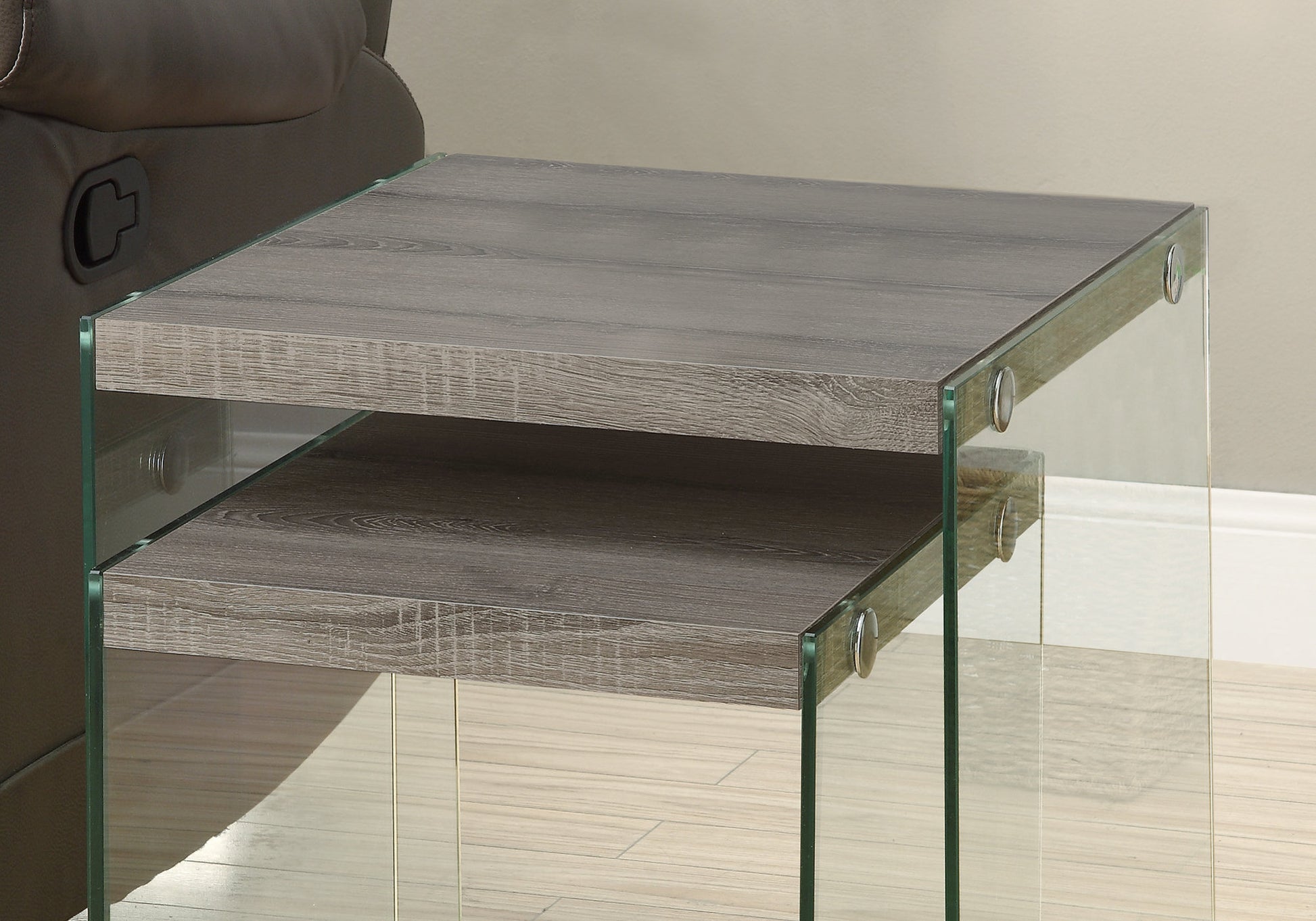 TABLE GIGOGNE - ENSEMBLE 2PCS / TAUPE FONCE / VERRE TREMPE