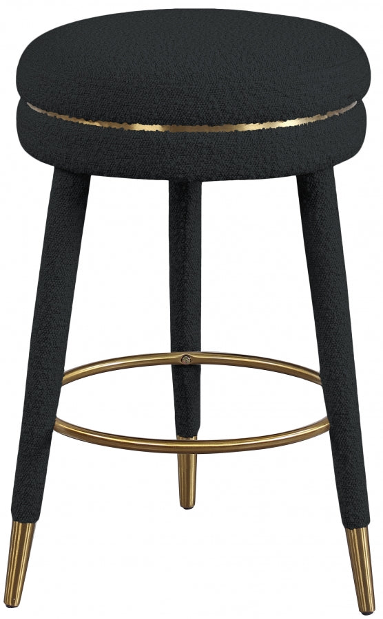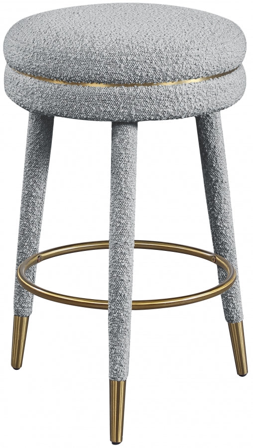 Élégant et accrocheur, le superbe tabouret de comptoir Coral en tissu bouclé de Meridian Furniture est le complément parfait à tout espace.