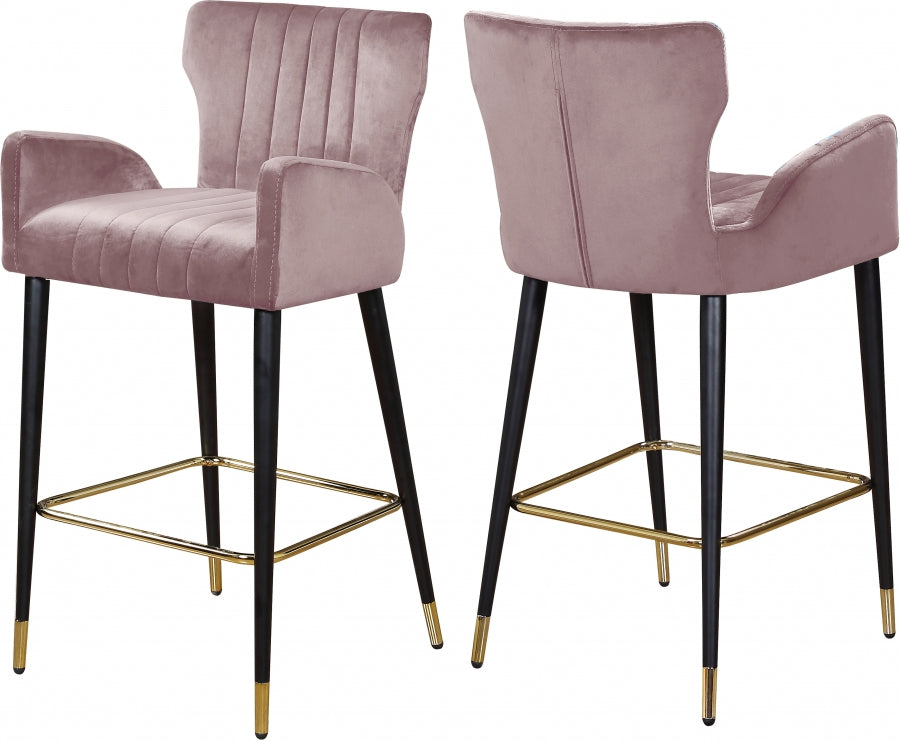 Injectez de la belle couleur dans votre comptoir ou votre bar à la maison avec le tabouret en velours Luxe. Les côtés évasés et le dossier semi-haut offrent un soutien pendant que vous êtes assis, pour que vous restiez à l'aise pendant tout le repas. Le capitonnage en canaux sur le siège et le dossier ajoute un effet dimensionnel tout en aidant les coussins rembourrés à conserver leur volume et leur forme. Les pieds en métal reçoivent une finition noire pour un look contemporain et des pointes de quincaillerie dorées pour une finition royale.