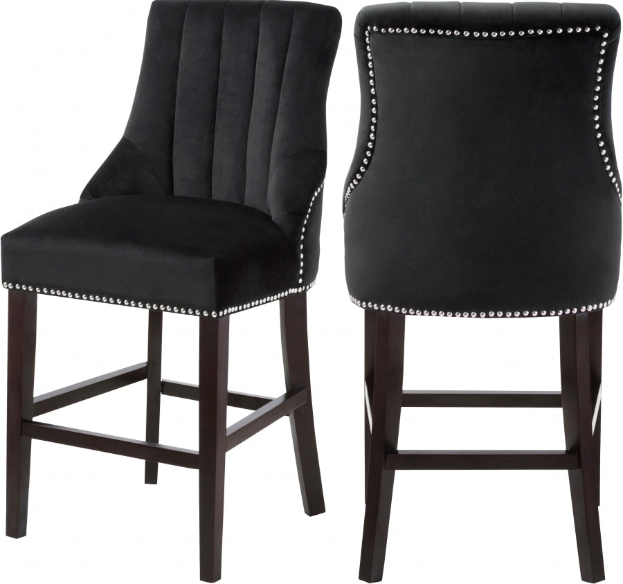 Ajoutez ce tabouret en velours Oxford à votre bar ou à votre comptoir de cuisine pour asseoir vos invités confortablement et de façon chic. Le revêtement en velours noir est épais et durable et a un léger éclat pour une touche de glamour. Le dossier du siège est capitonné de boutons profonds pour un look chic, tandis que le devant est recouvert d'un revêtement en velours lisse pour un confort élégant. La base est en bois avec une finition expresso et dispose d'un repose-pieds pour un soutien et un confort supplémentaires lorsque vous êtes assis.