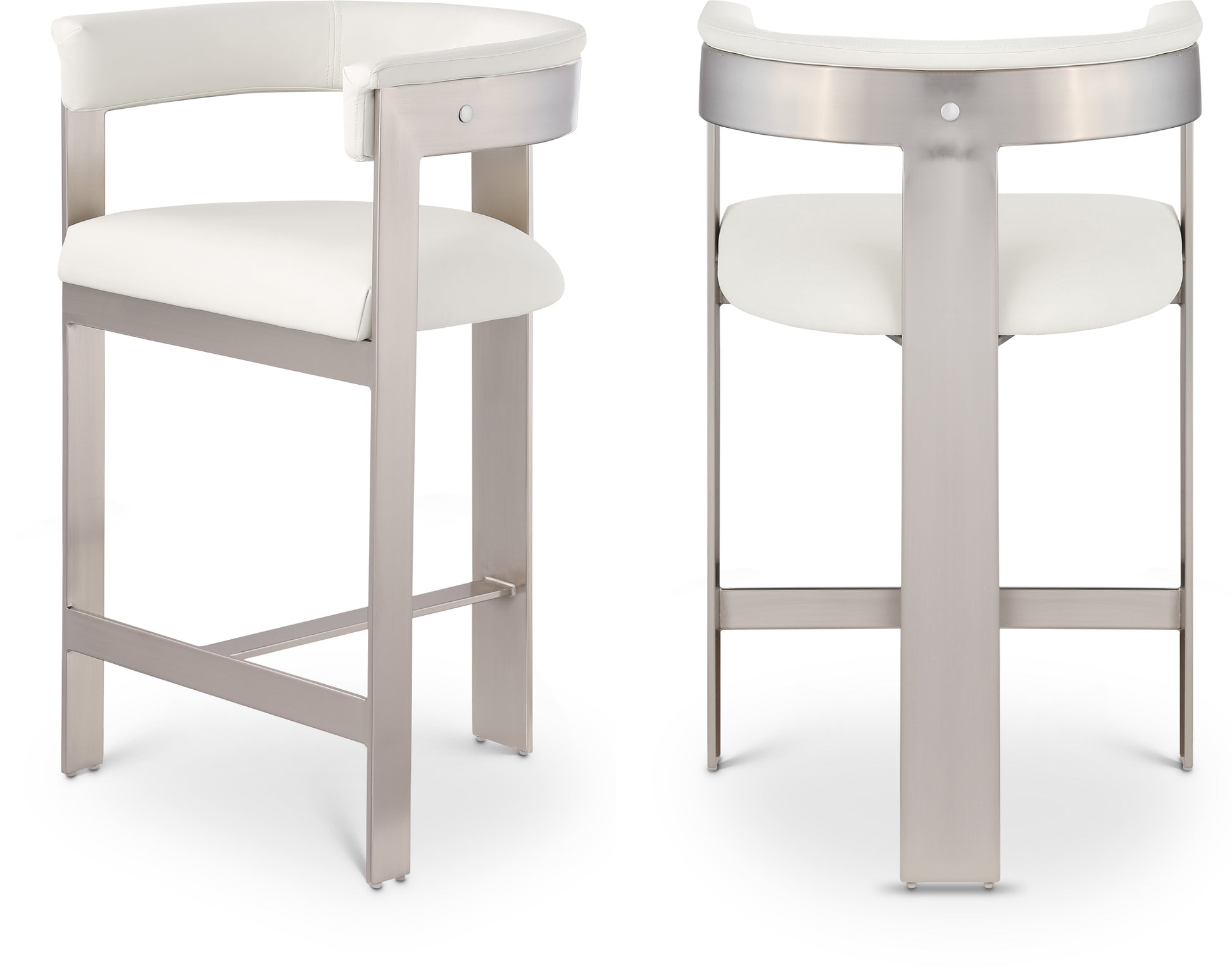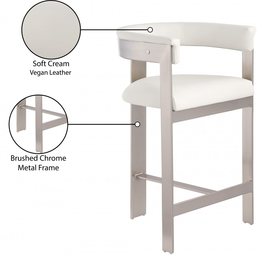 Profitez d'une expérience culinaire élevée en ramenant à la maison ce tabouret de comptoir en cuir végétalien Romeo. Doté de sièges et de dossiers recouverts d'un tissu en cuir végétalien doux, ce tabouret offre à la fois style et confort. Les cadres en métal chromé brossé ajoutent une touche contemporaine, faisant de ce tabouret un ajout chic à votre salle à manger. Les dossiers incurvés offrent non seulement un look élégant, mais également un soutien optimal pour le corps, garantissant que les convives soient détendus de l'apéritif au dessert.